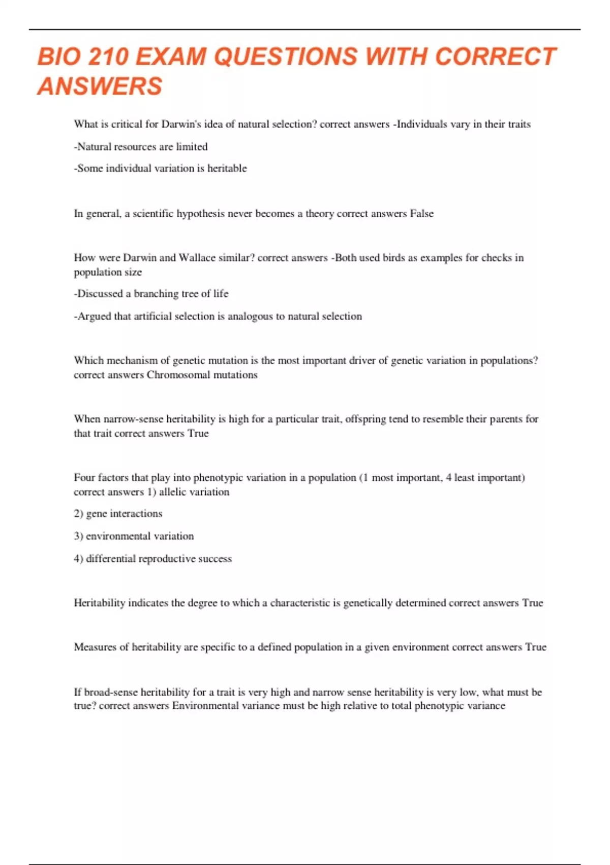 BIO 210 EXAM 1 QUESTIONS AND ANSWERS/ A+ Graded