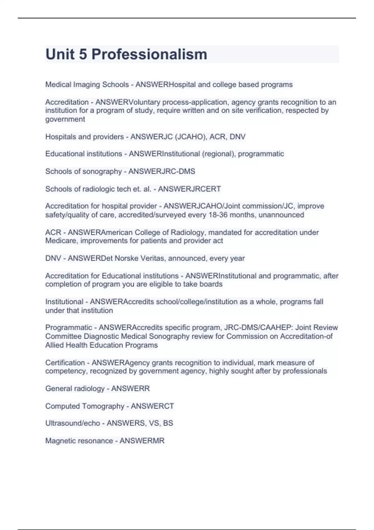 Unit 5 Professionalism.RMSKS 2023 recertification questions and answers