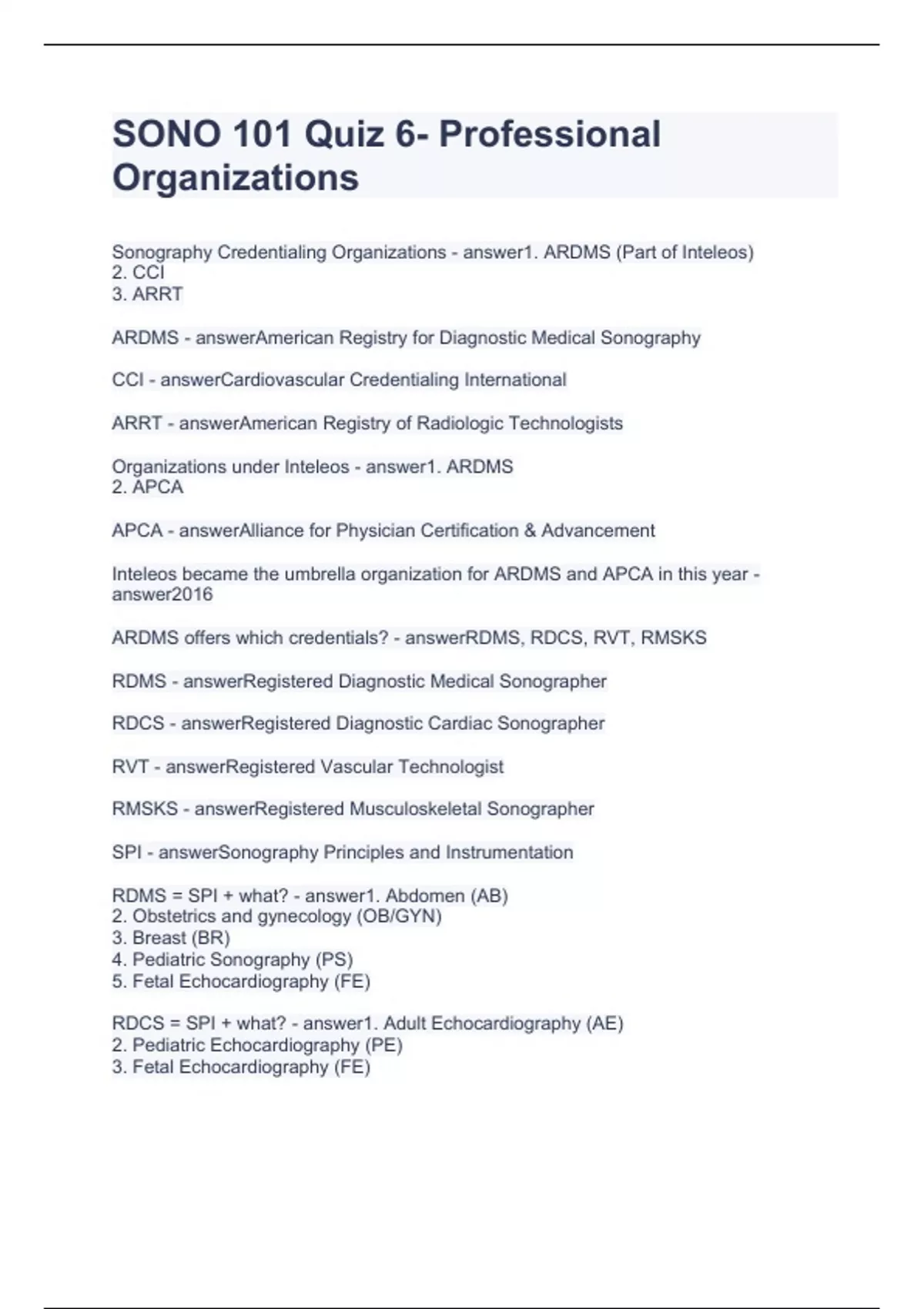 SONO 101 Quiz 6.Study of RMSKS with questions and answers all correct