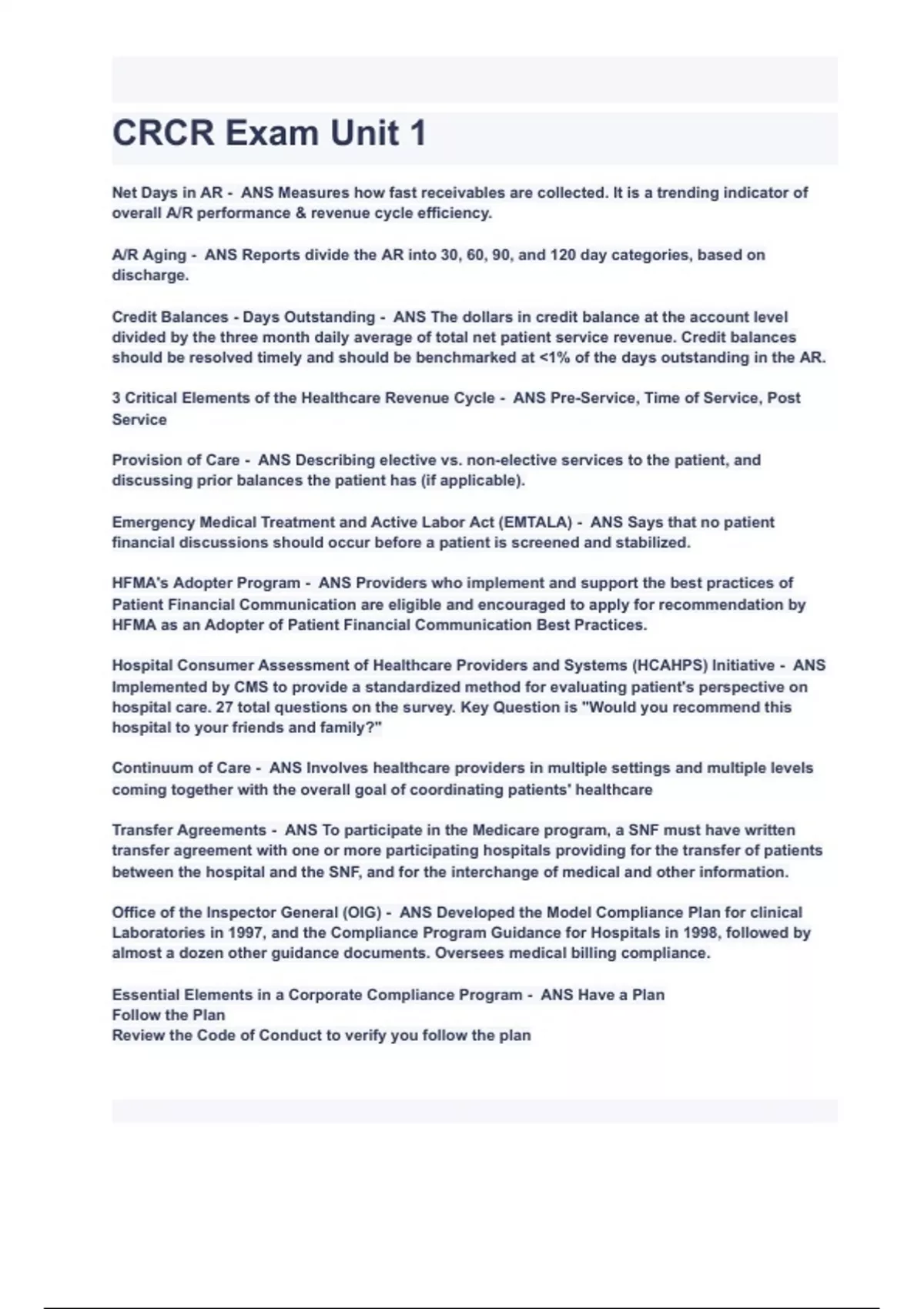 HFMA CRCR Actual Exam Questions with correct Answers Latest Version 2024( A GRADED 100% VERIFIED)!! ALL BUNDLED HERE!!!.