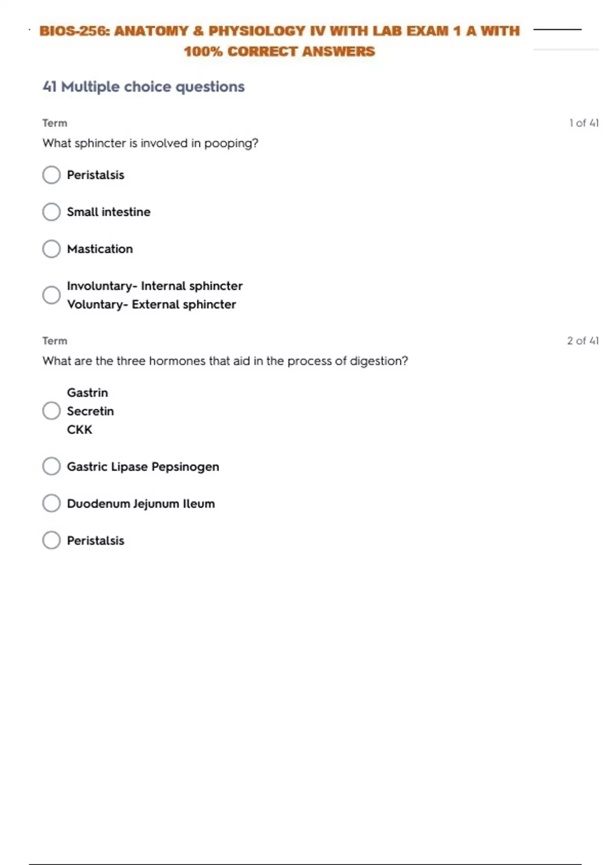 BIOS-256: ANATOMY & PHYSIOLOGY IV WITH LAB EXAM 1 A WITH 100% CORRECT ANSWERS