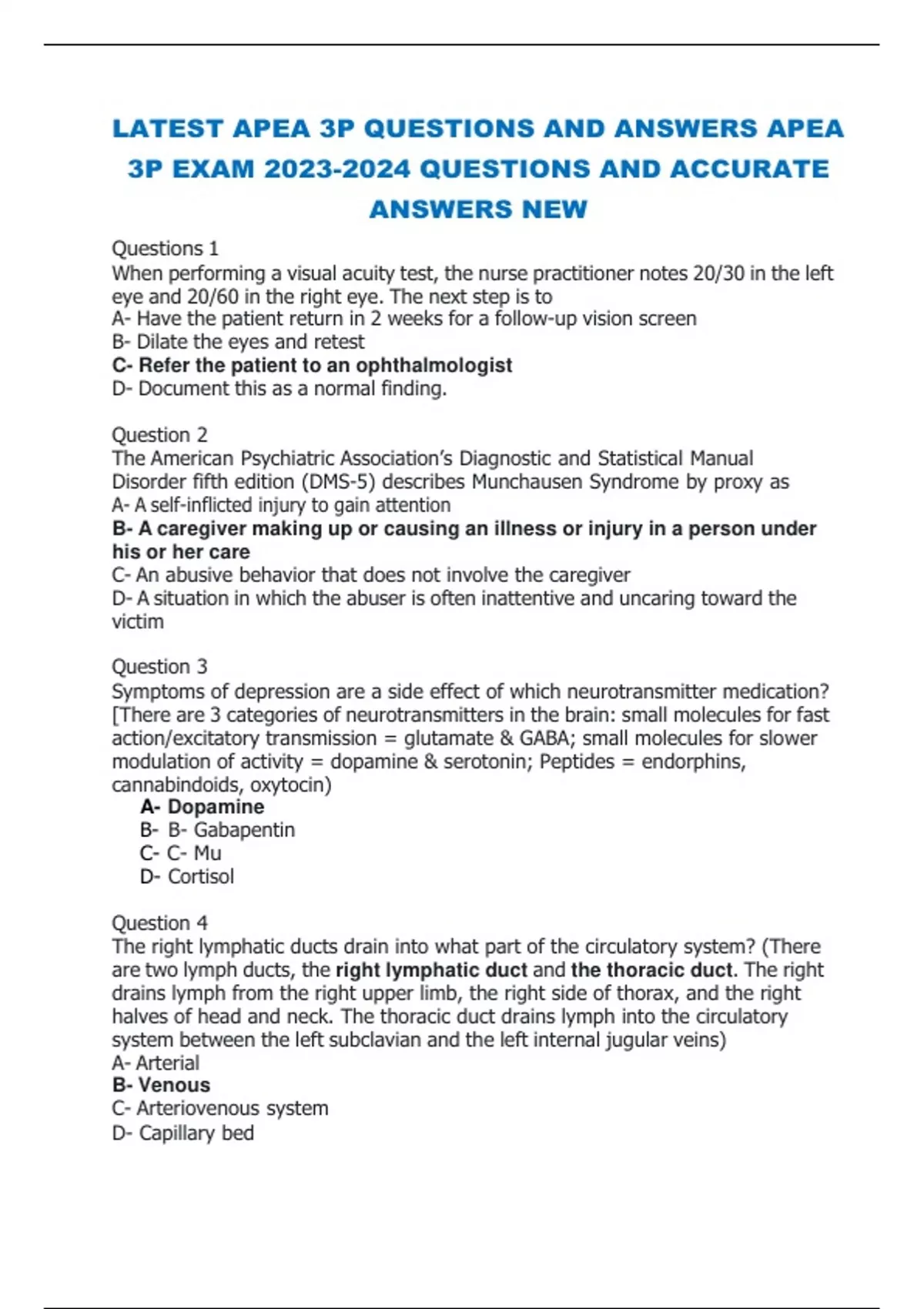 latest apea 3p questions and answers apea 3p exam