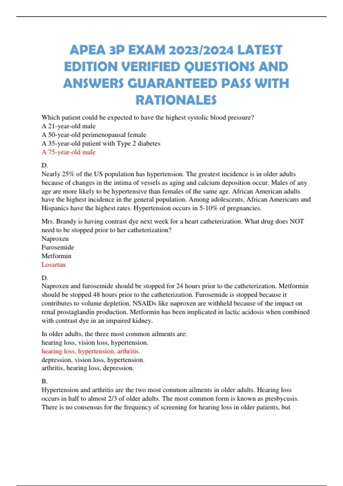 APEA 3P EXAM 2023/2024 LATEST EDITION VERIFIED QUESTIONS AND ANSWERS GUARANTEED PASS WITH RATIONALES