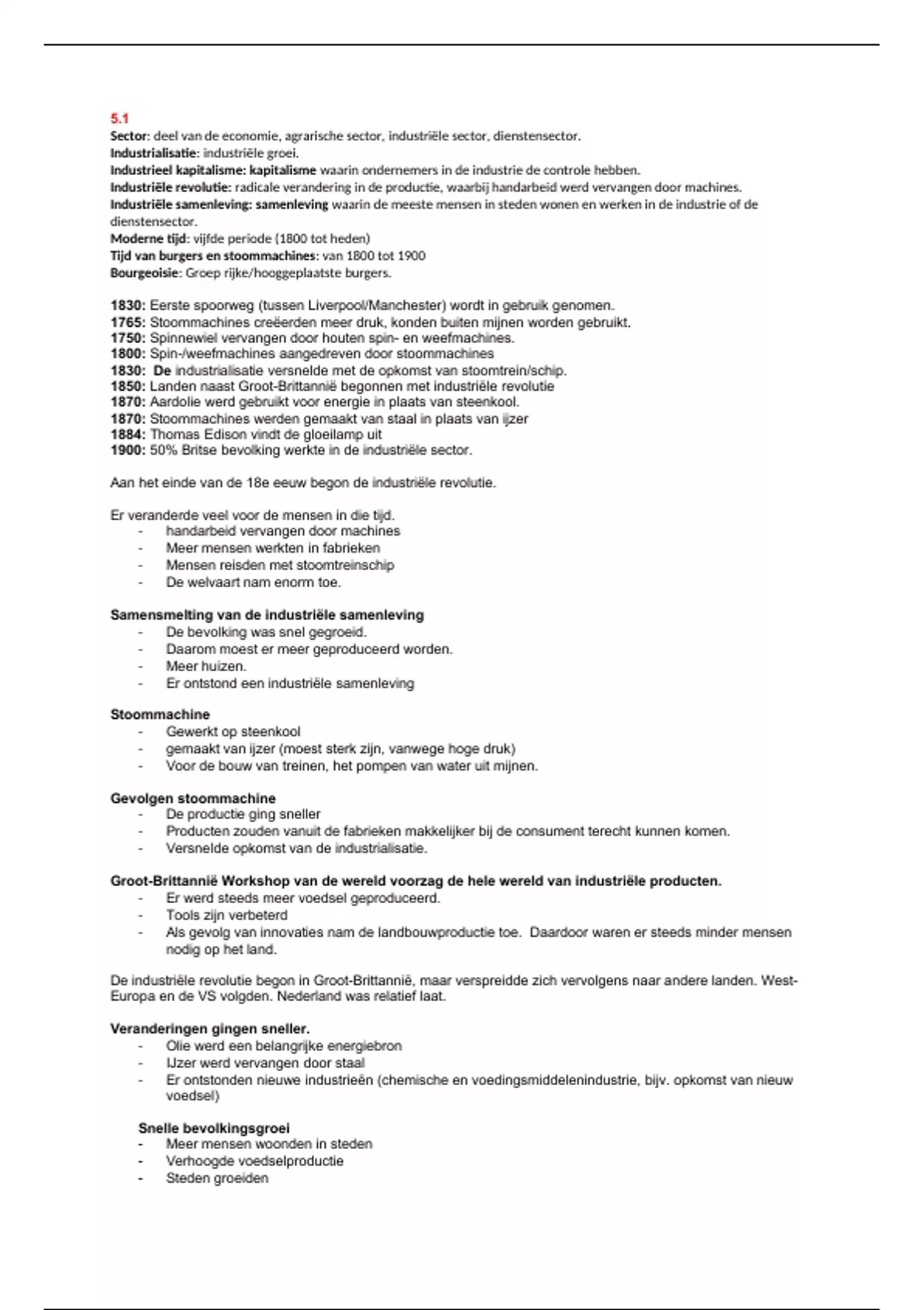 Industriële revolutie: radicale verandering in de productie, waarbij handarbeid werd vervangen door machines.