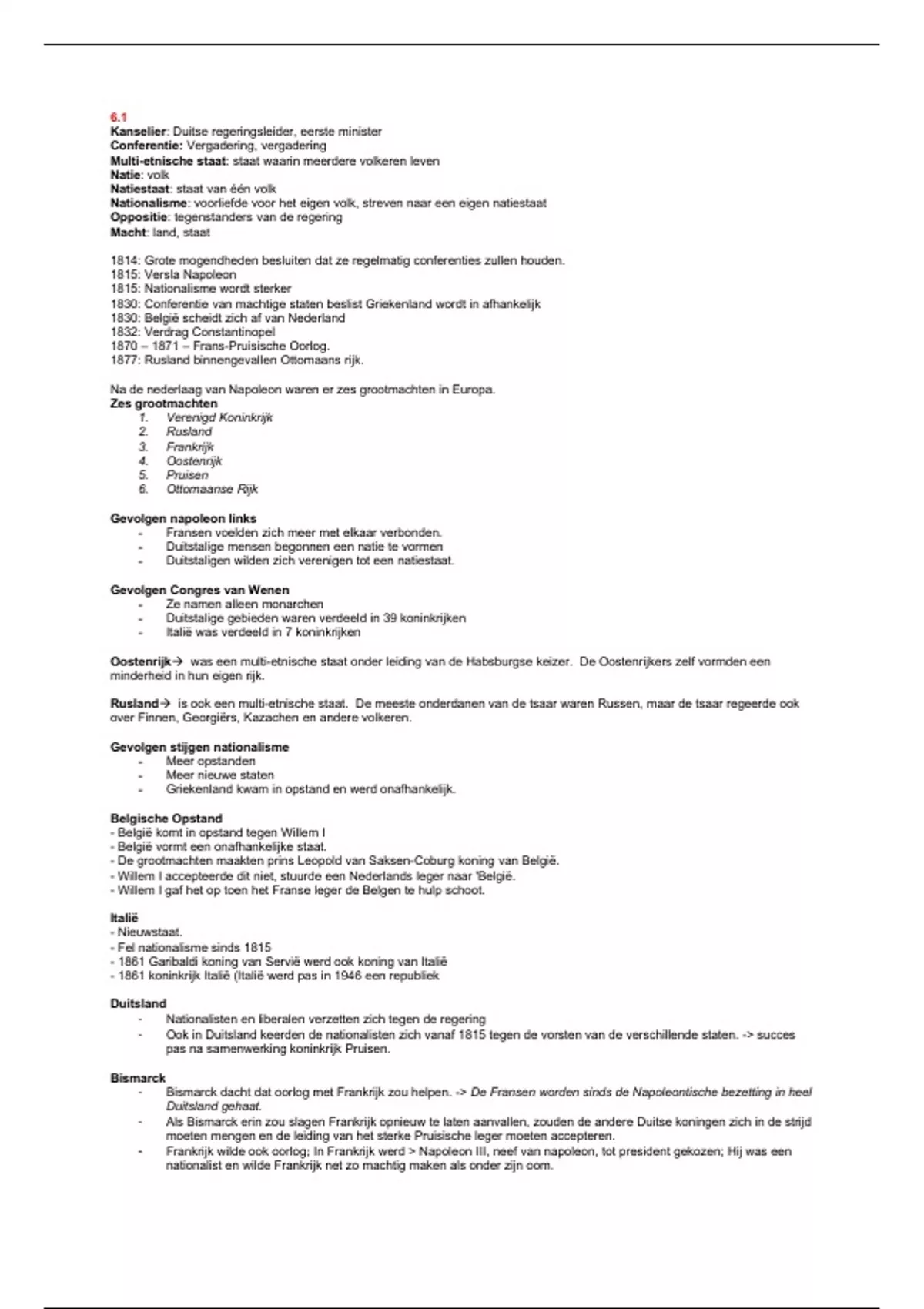 Na de nederlaag van Napoleon waren er zes grootmachten in Europa.