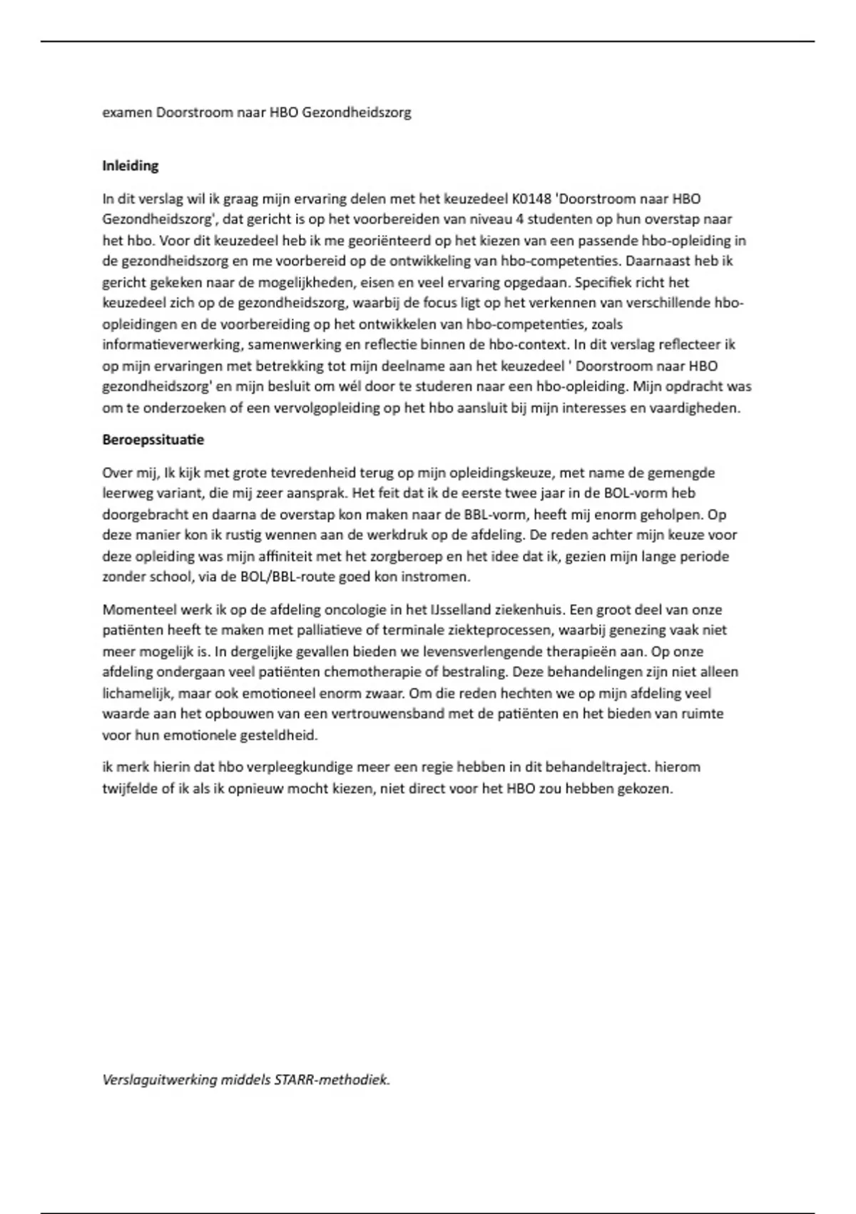 Verslaguitwerking middels STARR-methodiek.