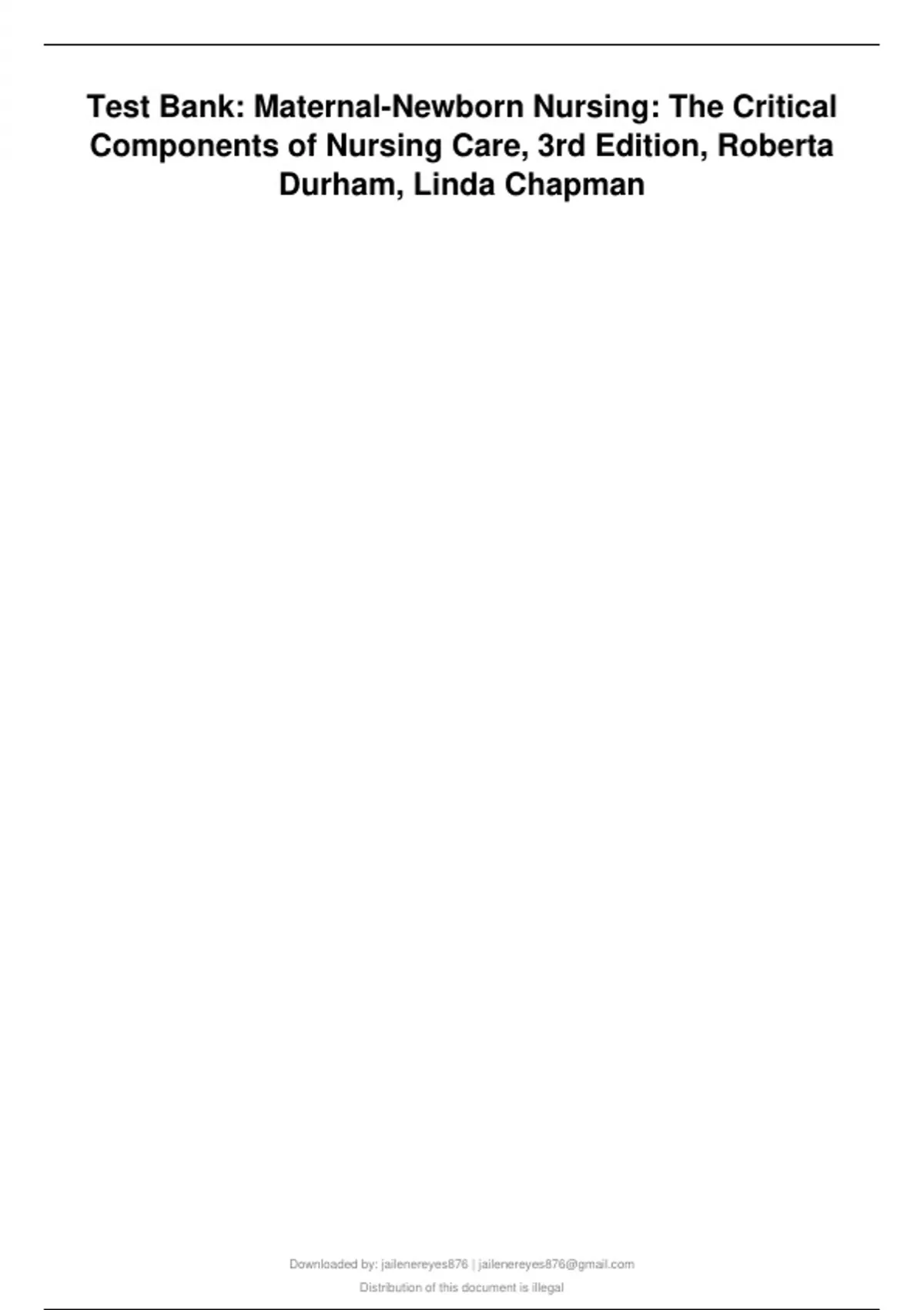 Test Bank - Maternal Newborn Nursing: The Critical Components of Nursing Care, 3rd Edition (Durham, 2023), Chapter 1-19