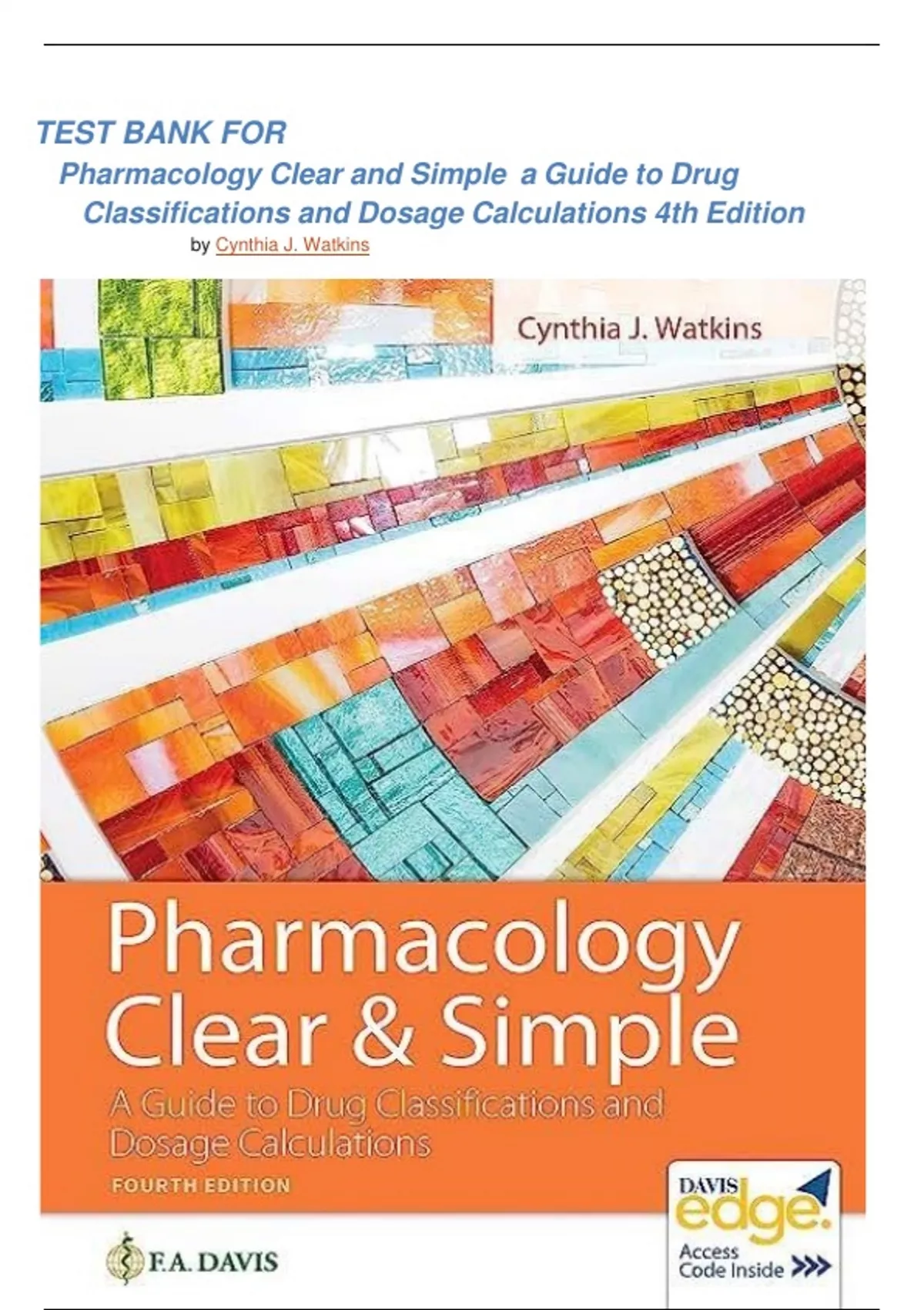 Test Bank For Pharmacology Clear and Simple A Guide to Drug Classifications and Dosage Calculations 4th Edition (Watkins;2024)graded A+