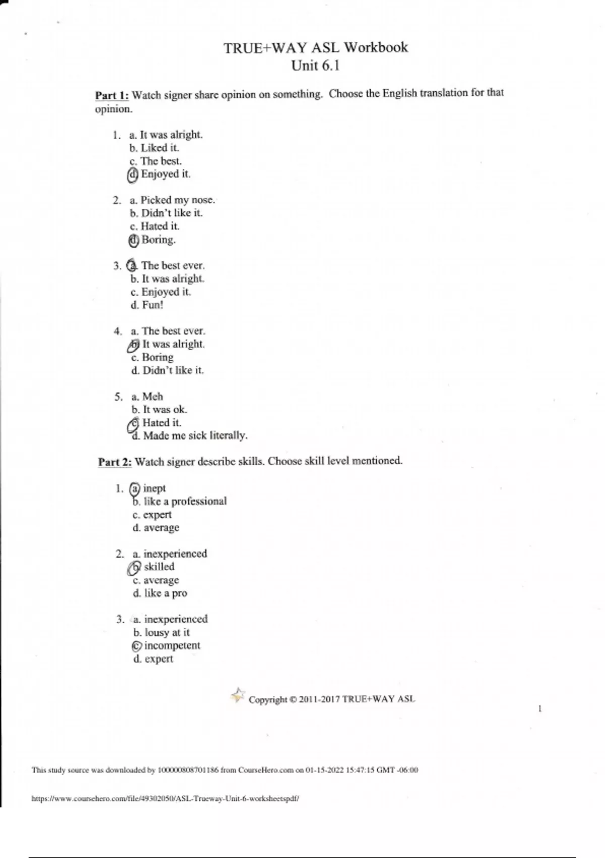 ASL Trueway Unit 6 Worksheet Complete Solution