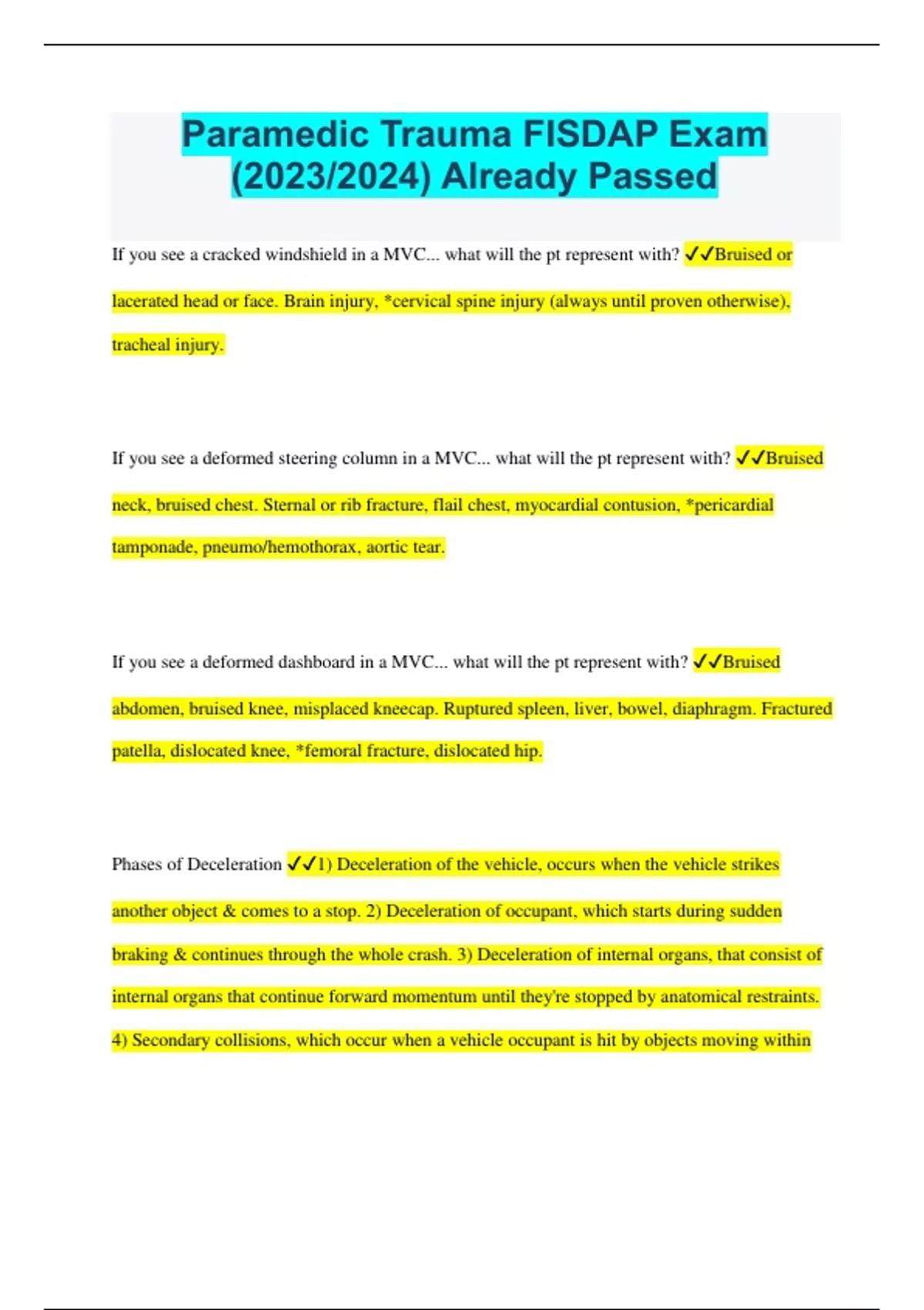 Paramedic Trauma FISDAP Exam (2023/2024) Already Passed