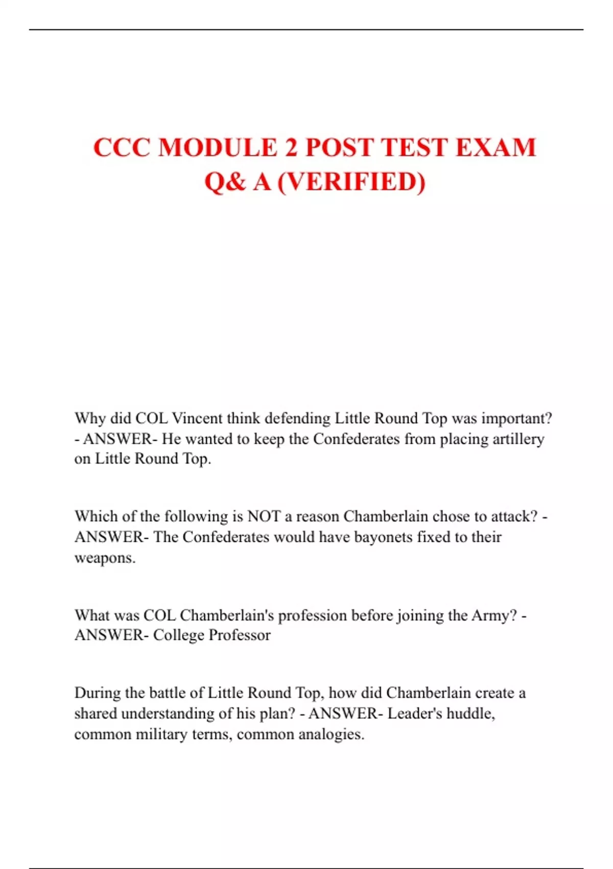 CCC MODULE 2 POST TEST EXAM Q& A (VERIFIED) CCC MODULE 2 POST TEST EXAM Q& A (VERIFIED) CCC MODULE 2 POST TEST EXAM Q& A (VERIFIED) CCC MODULE 2 POST TEST EXAM Q& A (VERIFIED) CCC MODULE 2 POST TEST EXAM Q& A (VERIFIED)