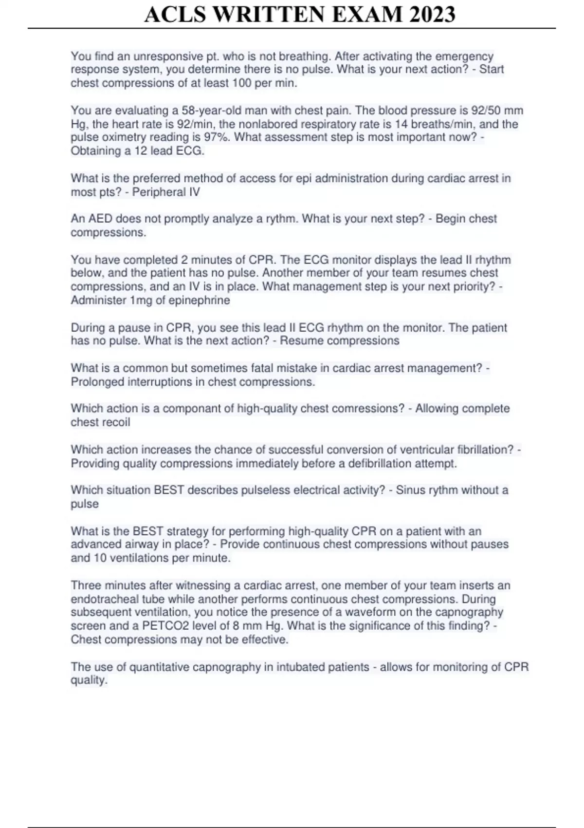 ACLS WRITTEN EXAM 2023.