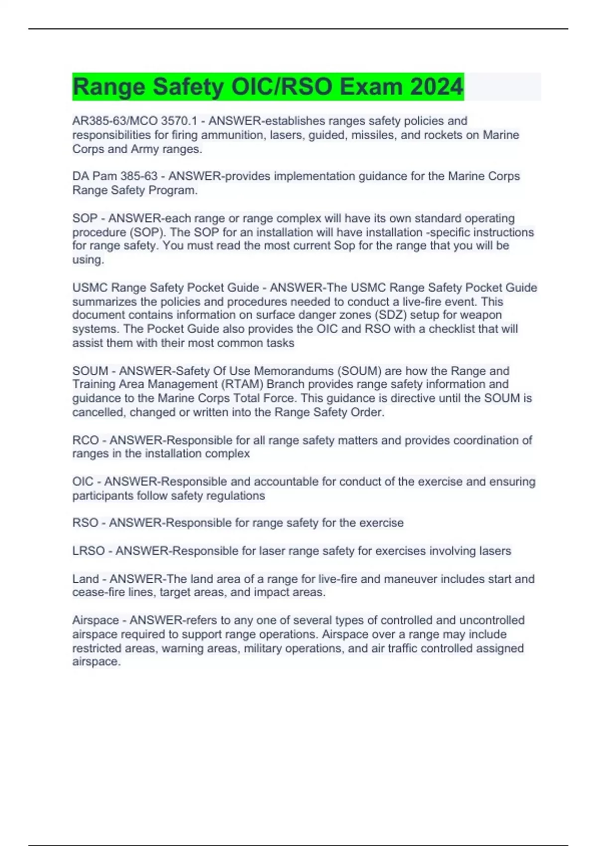 Range Safety OIC/RSO Exam 2024