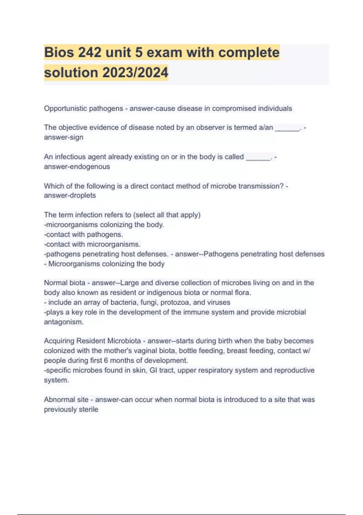 Bios 242 unit 5 exam with complete solution 2023/2024