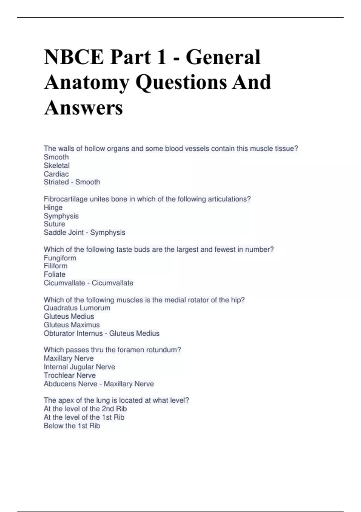 NBCE Part 1 - General Anatomy Questions And Answers