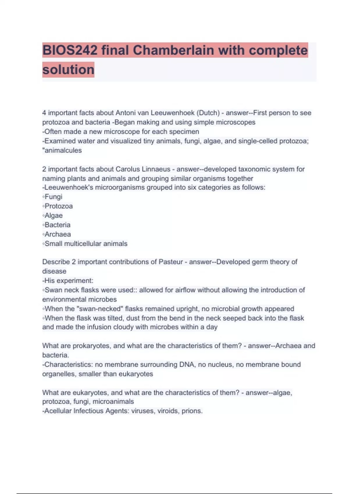 - BIOS242 finl Chamberlain with complete solution