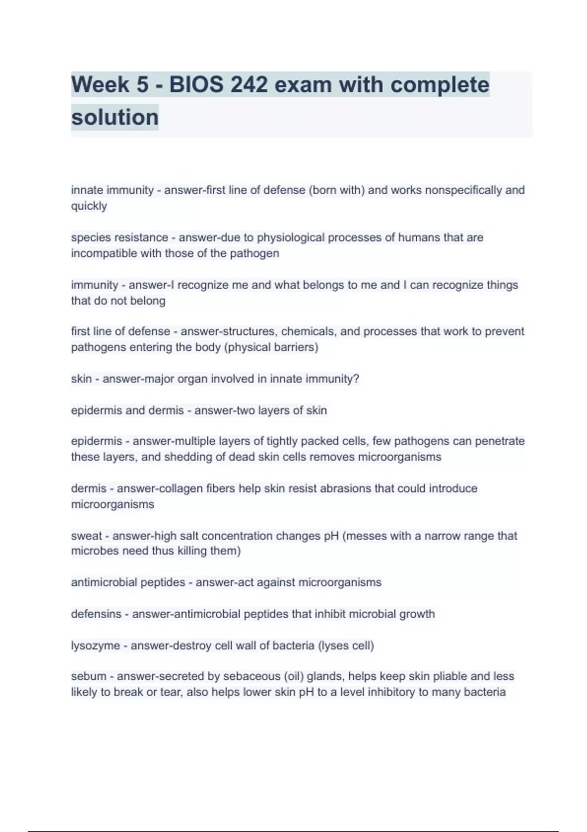 - Wek 5 - BIOS 242 eam with complete solution