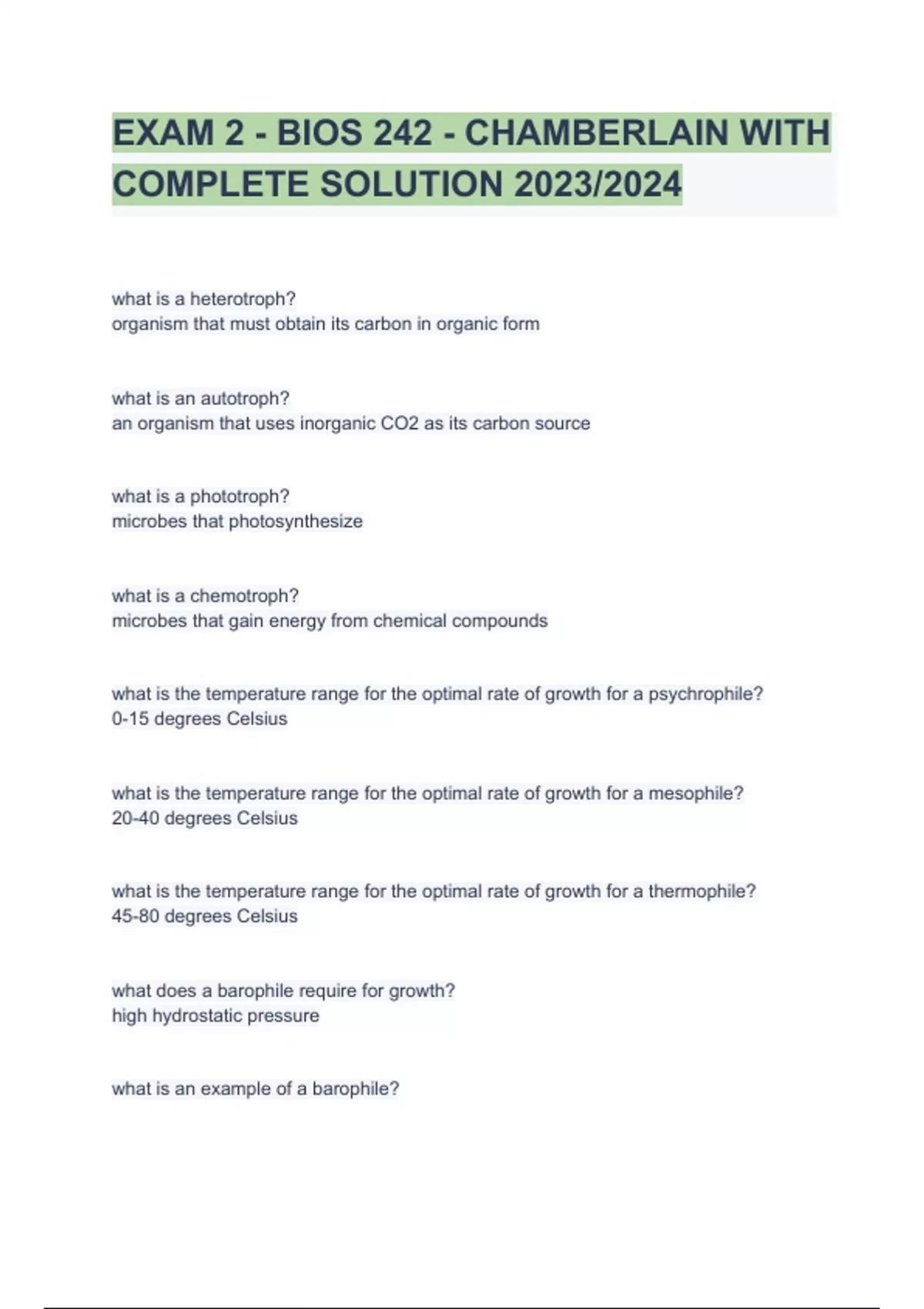 EXAM 2 - BIOS 242 - CHAMBERLAIN WITH COMPLETE SOLUTION 2023/2024