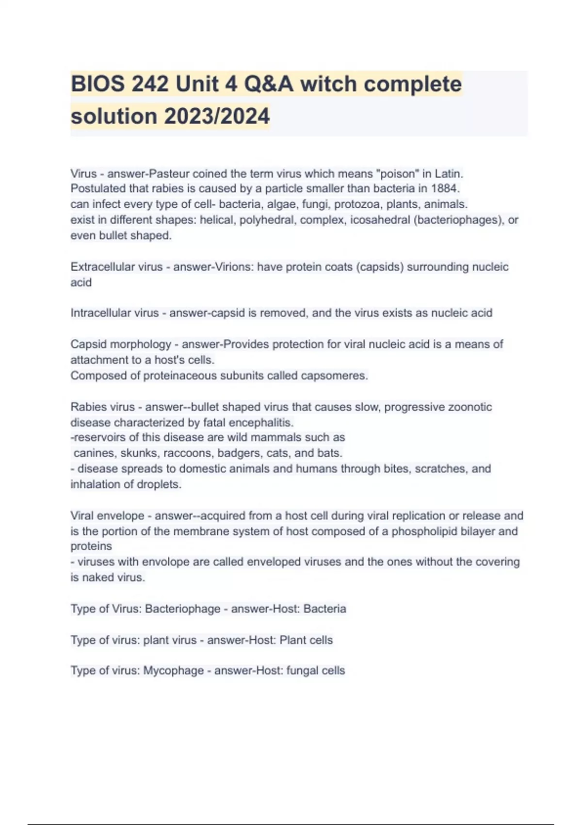 - BIOS 242 Unit 4 Q&A witch complete solution 2023/2