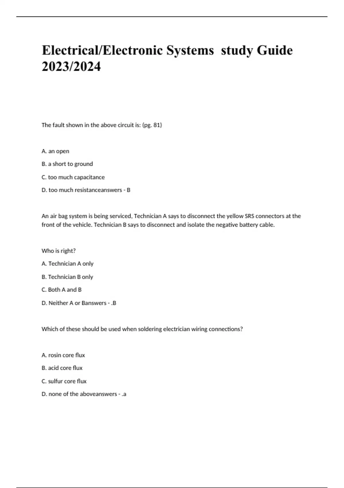 Electrical/Electronic Systems study Guide 2023/2024