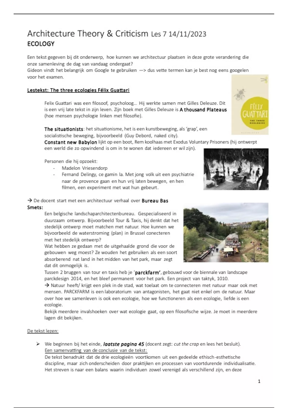 De tekst benadrukt dat de drie ecologieën voortkomen uit een gedeelde ethisch-esthetische