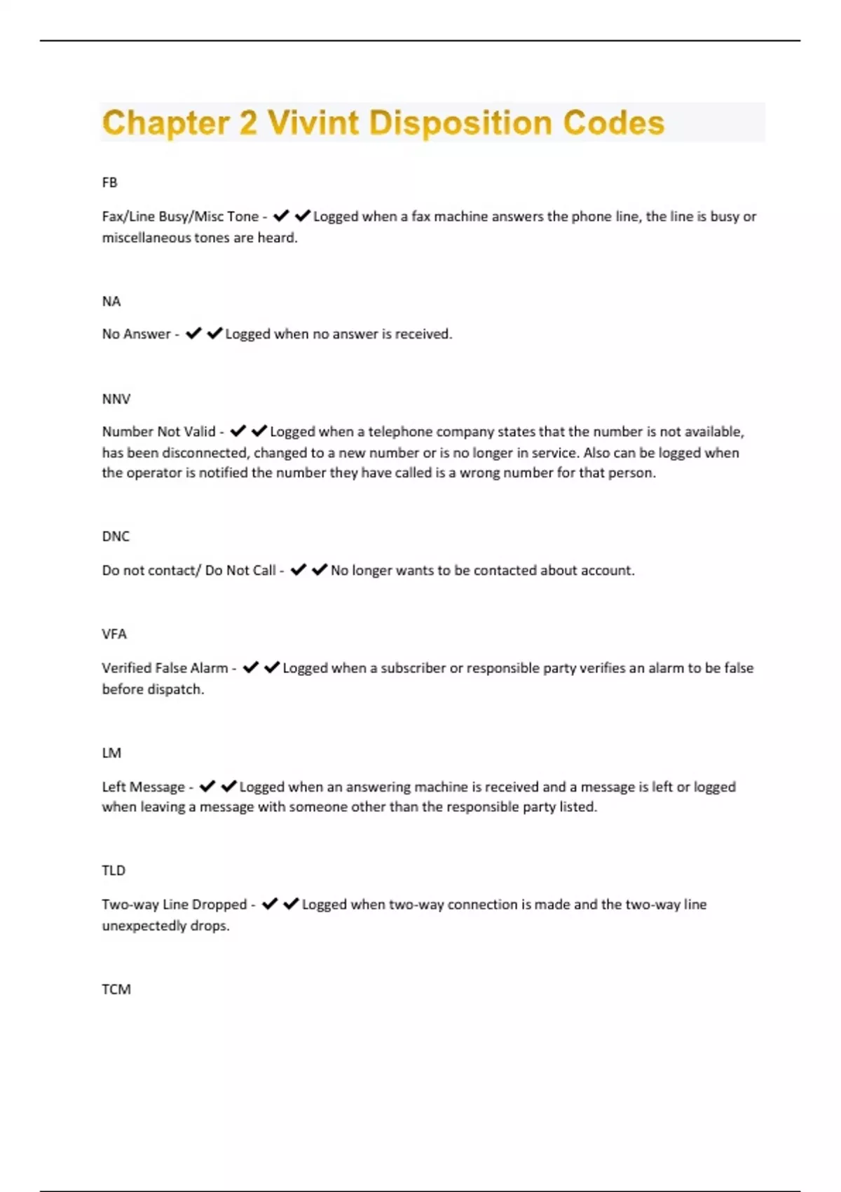 Chapter 2 Vivint Disposition Codes Questions And Answers Already Passed!!