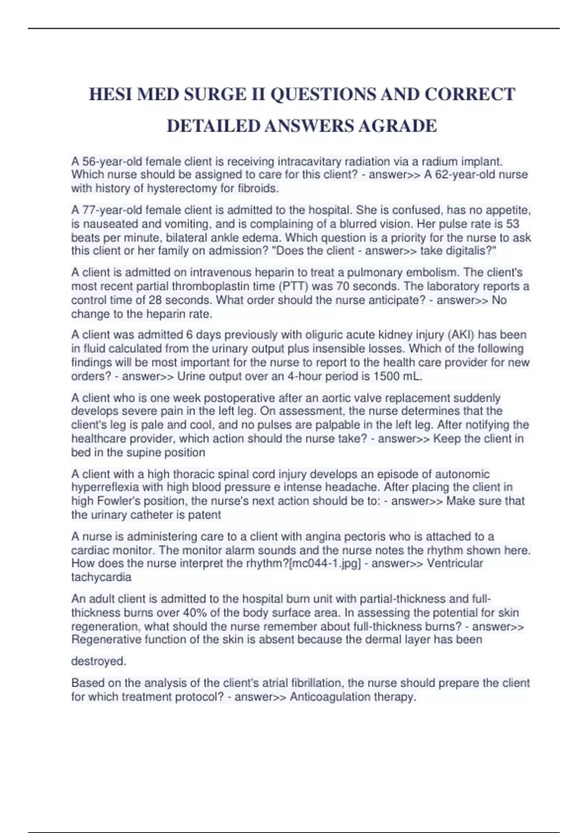 HESI MED SURGE II QUESTIONS AND CORRECT DETAILED ANSWERS AGRADE