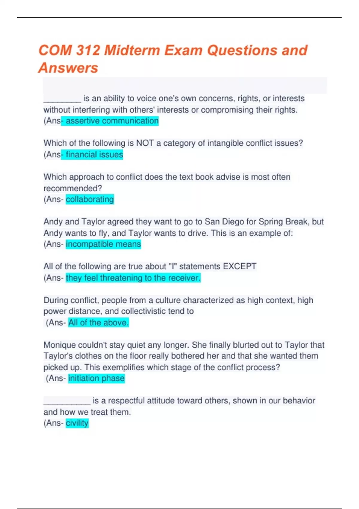 COM 312 Midterm Exam: Questions & Answers