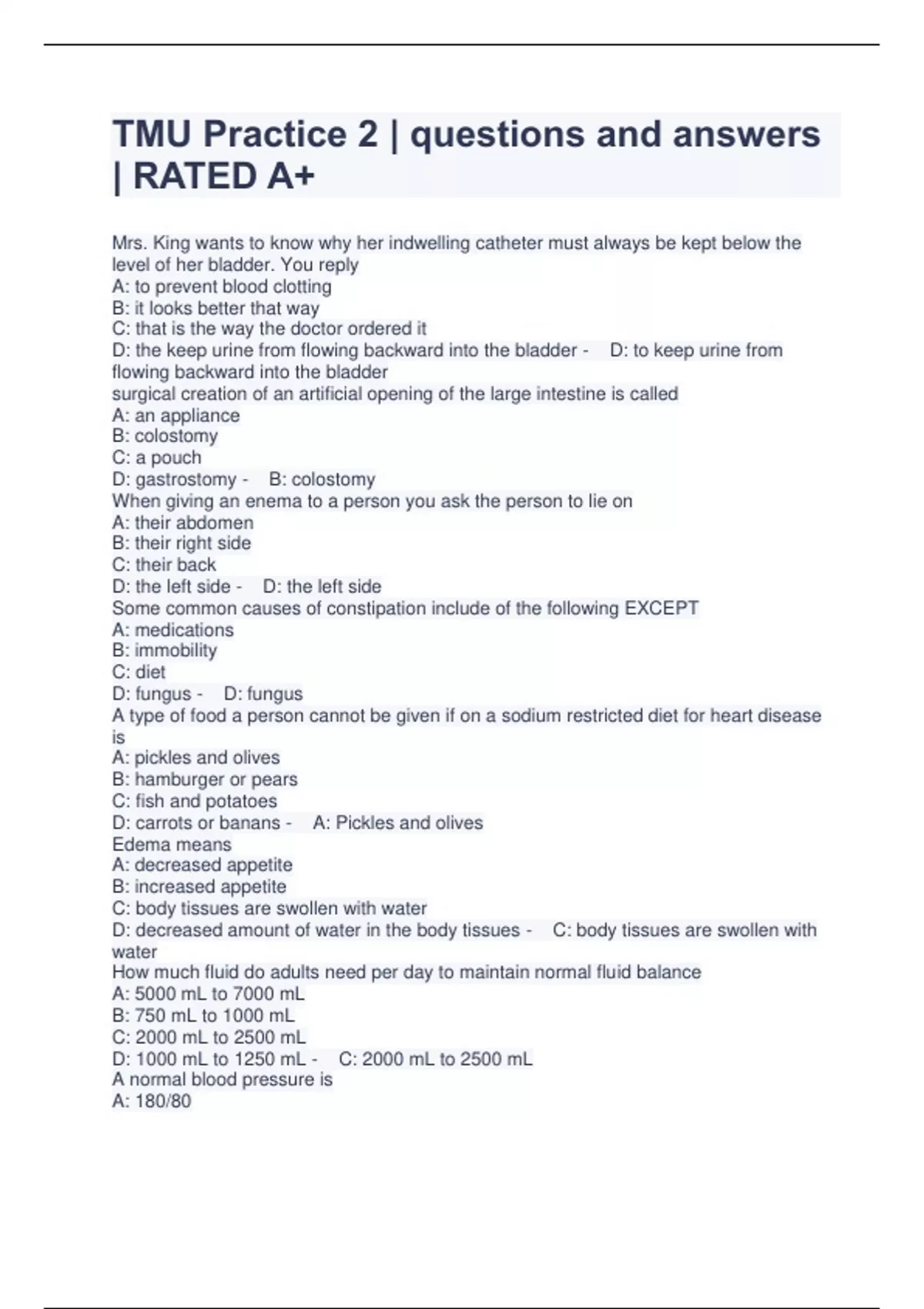 TMU Practice 2 | questions and answers | RATED A+