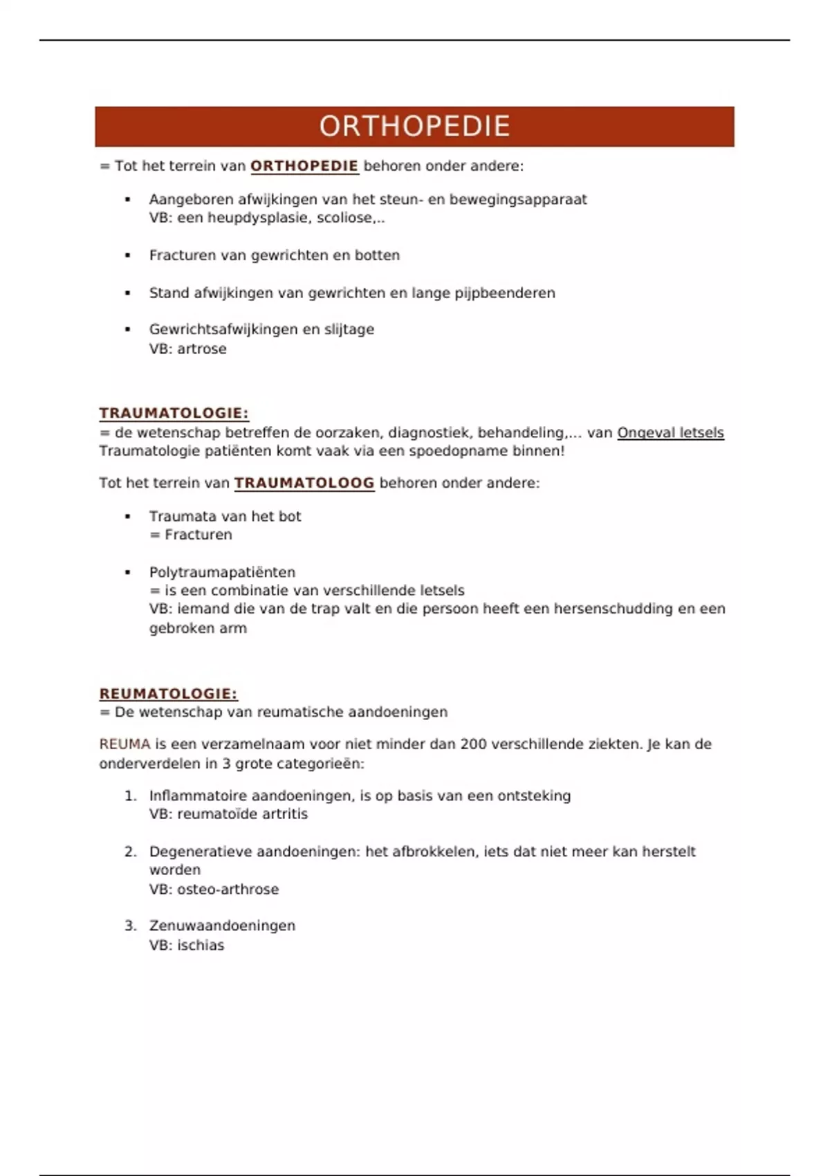 = Tot het terrein van ORTHOPEDIE behoren onder andere: