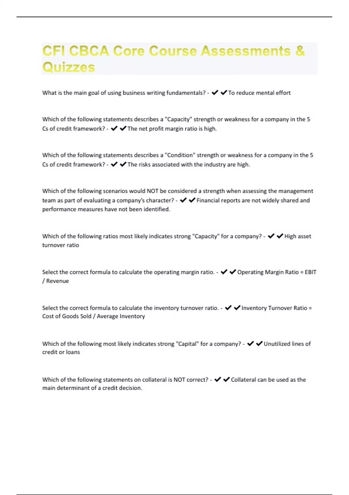 CFI CBCA Core Course Assessments & Quizzes Graded A+