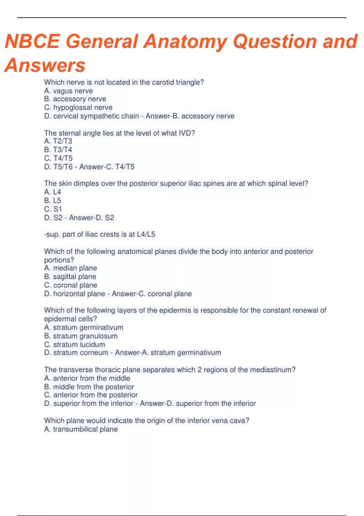 nbce general anatomy questions and answers