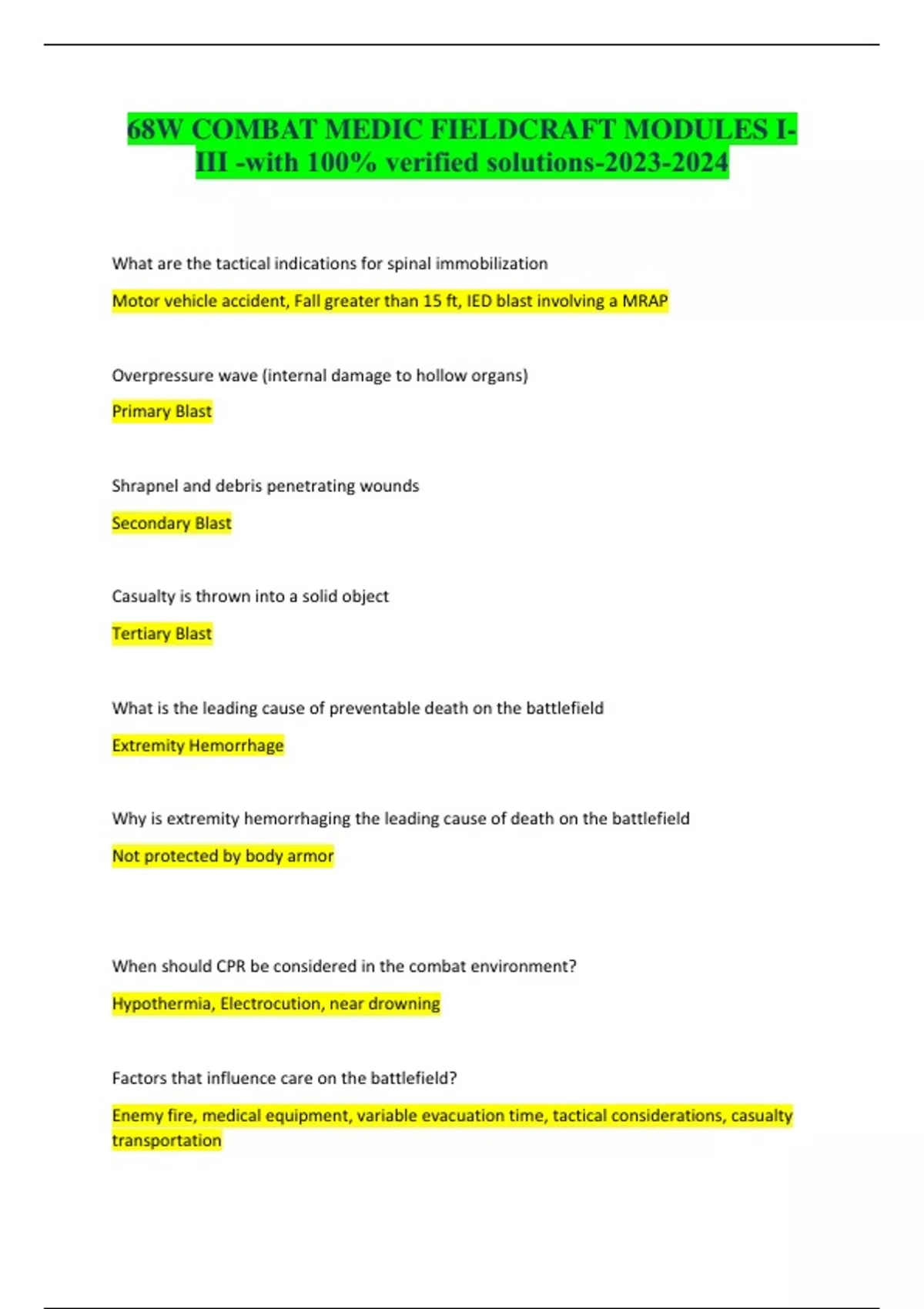 68W COMBAT MEDIC FIELDCRAFT MODULES IIII -with 100% verified sols-