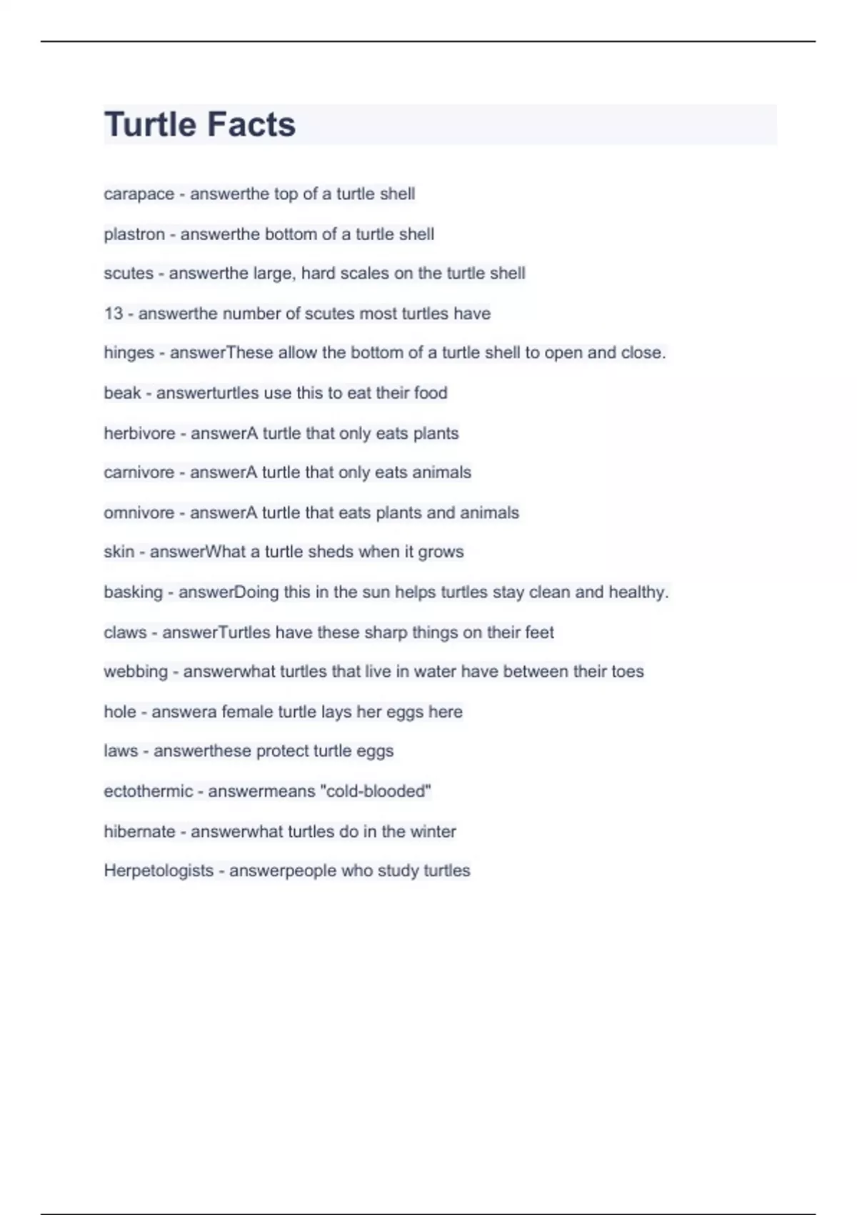 Exam of 1 pages for the course CACTS at CACTS (Turtle Facts.)