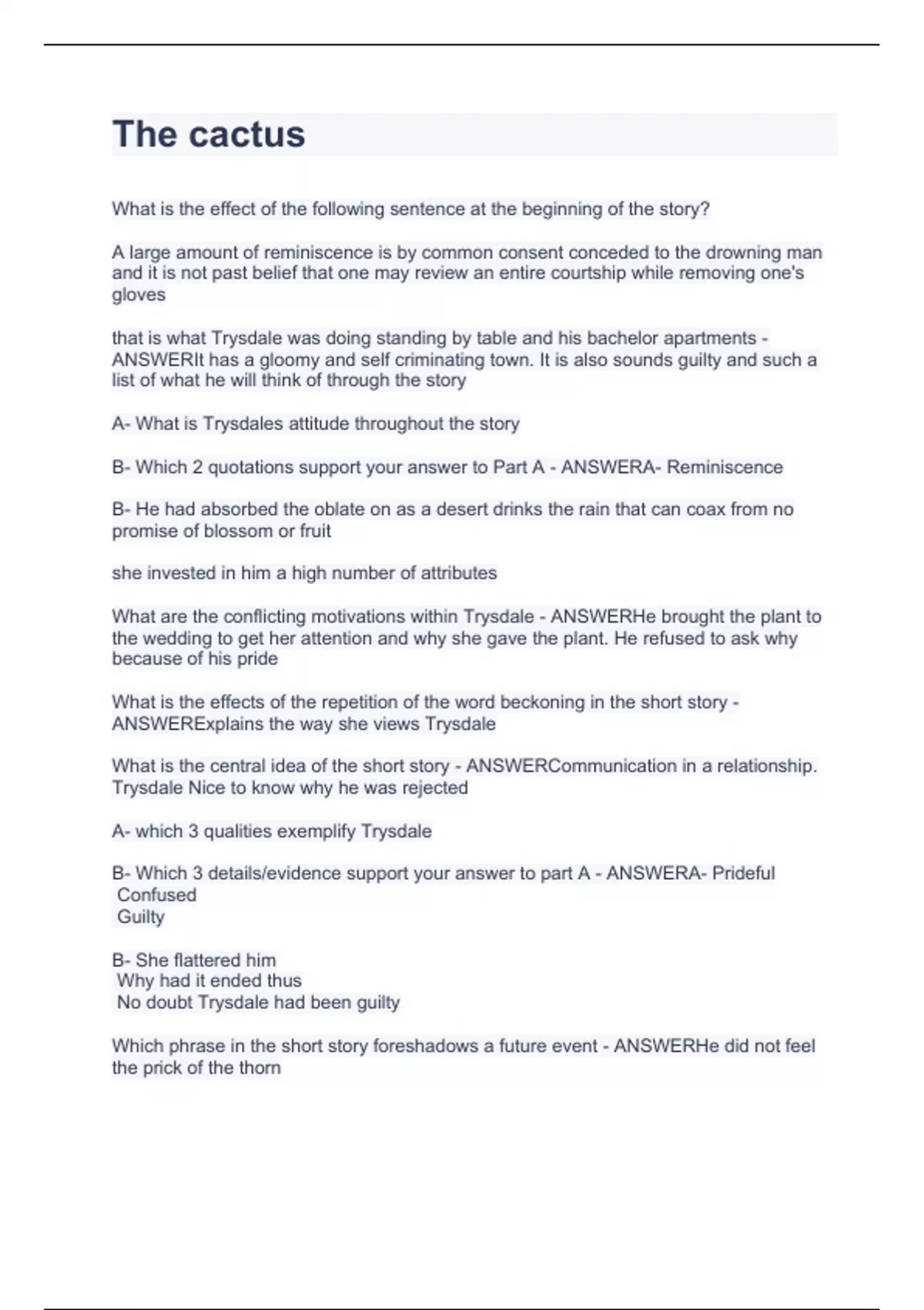 The cactus.Interviews of CACTS having all answers sure