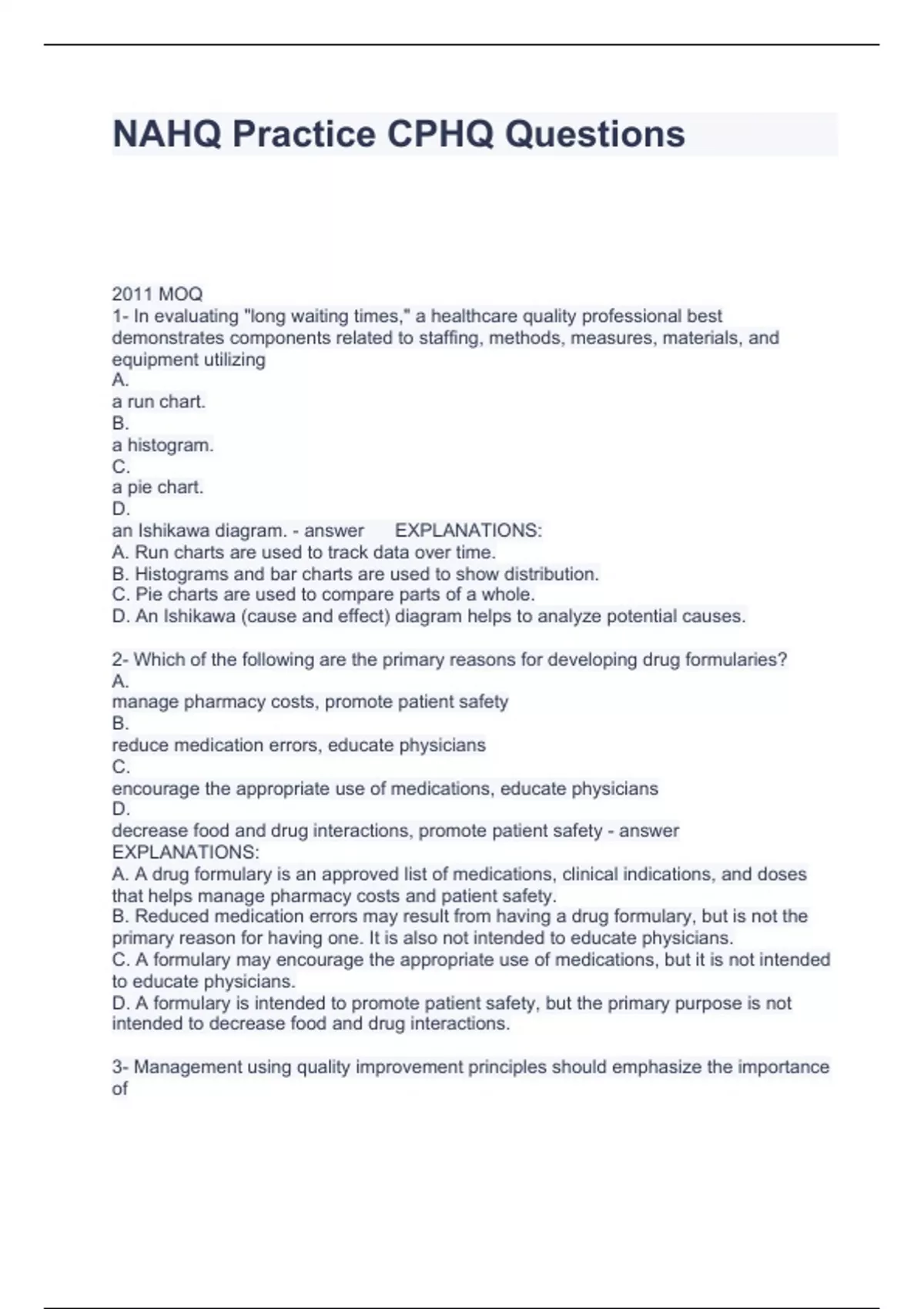 NAHQ Practice CPHQ Questions