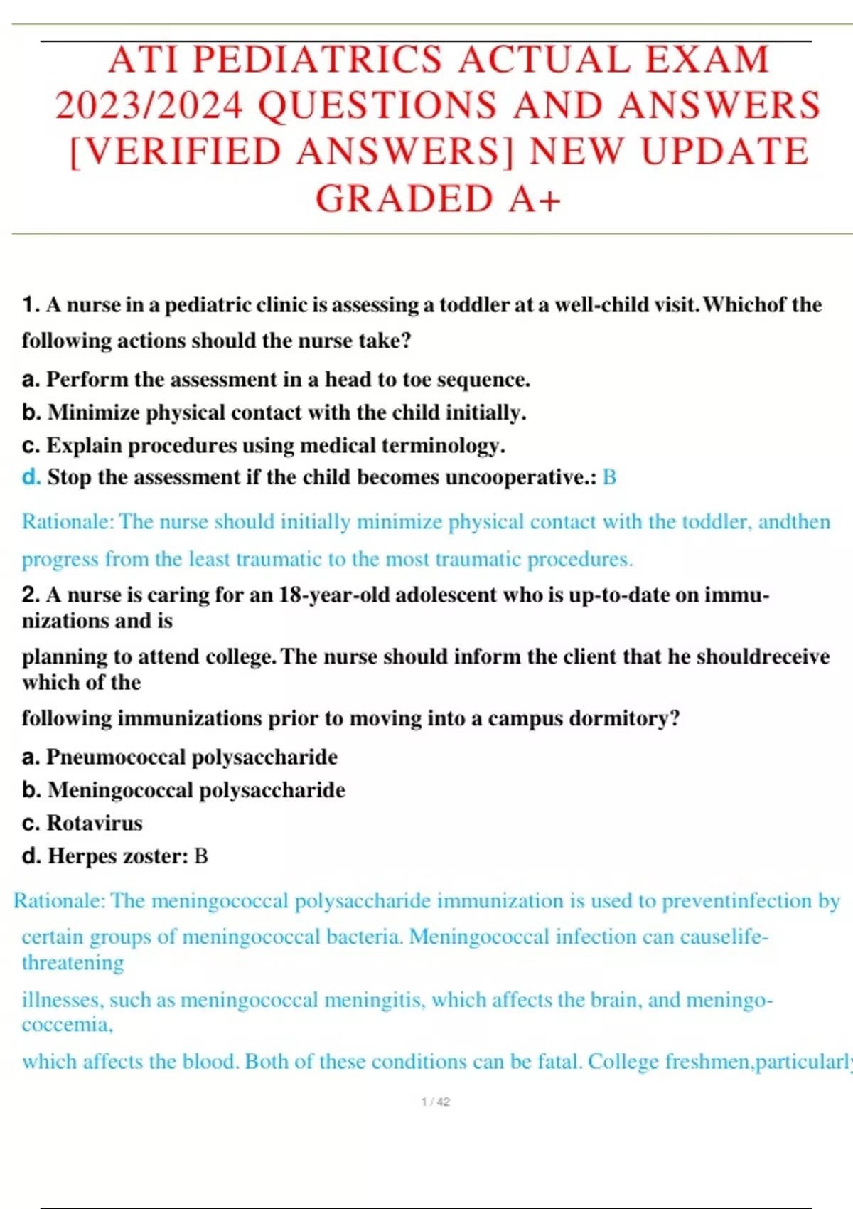 ATI PEDIATRICS ACTUAL EXAM 2023/2024 QUESTIONS AND ANSWERS [VERIFIED ANSWERS] NEW UPDATE GRADED A+ ATI PEDIATRICS ACTUAL EXAM 2023/2024 QUESTIONS AND ANSWERS [VERIFIED ANSWERS] NEW UPDATE GRADED A+ ATI PEDIATRICS ACTUAL EXAM 2023/2024 QUESTIONS AND ANSWERS [VERIFIED ANSWERS] NEW UPDATE GRADED A+