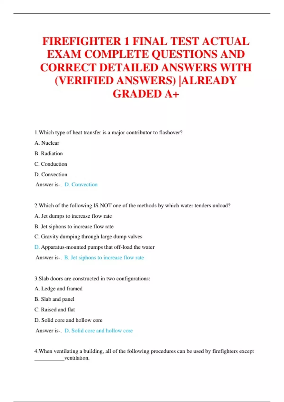 FIREFIGHTER 1 FINAL TEST ACTUAL EXAM COMPLETE QUESTIONS AND CORRECT DETAILED ANSWERS WITH (VERIFIED ANSWERS) |ALREADY GRADED A+ FIREFIGHTER 1 FINAL TEST ACTUAL EXAM COMPLETE QUESTIONS AND CORRECT DETAILED ANSWERS WITH (VERIFIED ANSWERS) |ALREADY GRADED A+ FIREFIGHTER 1 FINAL TEST ACTUAL EXAM COMPLETE QUESTIONS AND CORRECT DETAILED ANSWERS WITH (VERIFIED ANSWERS) |ALREADY GRADED A+ FIREFIGHTER 1 FINAL TEST ACTUAL EXAM COMPLETE QUESTIONS AND CORRECT DETAILED ANSWERS WITH (VERIFIED ANSWERS) |ALREADY GRADED A+