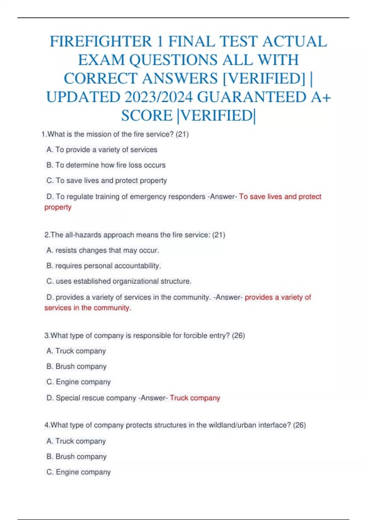 FIREFIGHTER 1 FINAL TEST ACTUAL EXAM QUESTIONS ALL WITH CORRECT ANSWERS [VERIFIED] | UPDATED 2023/2024 GUARANTEED A+ SCORE |VERIFIEDFIREFIGHTER 1 FINAL TEST ACTUAL EXAM QUESTIONS ALL WITH CORRECT ANSWERS [VERIFIED] | UPDATED 2023/2024 GUARANTEED A+ SCORE |VERIFIEDFIREFIGHTER 1 FINAL TEST ACTUAL EXAM QUESTIONS ALL WITH CORRECT ANSWERS [VERIFIED] | UPDATED 2023/2024 GUARANTEED A+ SCORE |VERIFIED