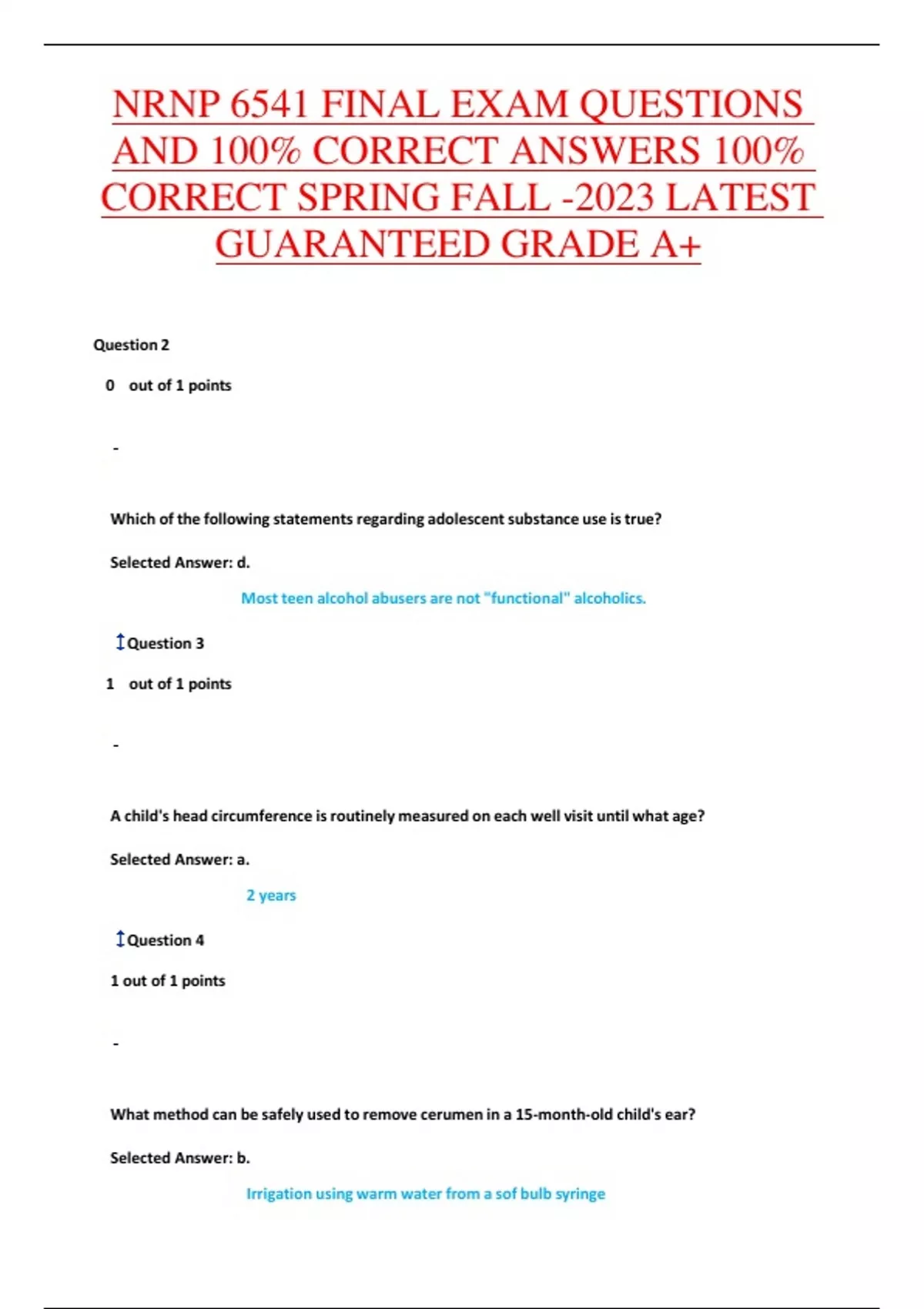 NRNP 6541 FINAL EXAM QUESTIONS AND 100% CORRECT ANSWERS 100% CORRECT SPRING FALL -2023 LATEST GUARANTEED GRADE A+ NRNP 6541 FINAL EXAM QUESTIONS AND 100% CORRECT ANSWERS 100% CORRECT SPRING FALL -2023 LATEST GUARANTEED GRADE A+ NRNP 6541 FINAL EXAM QUESTIONS AND 100% CORRECT ANSWERS 100% CORRECT SPRING FALL -2023 LATEST GUARANTEED GRADE A+ NRNP 6541 FINAL EXAM QUESTIONS AND 100% CORRECT ANSWERS 100% CORRECT SPRING FALL -2023 LATEST GUARANTEED GRADE A+