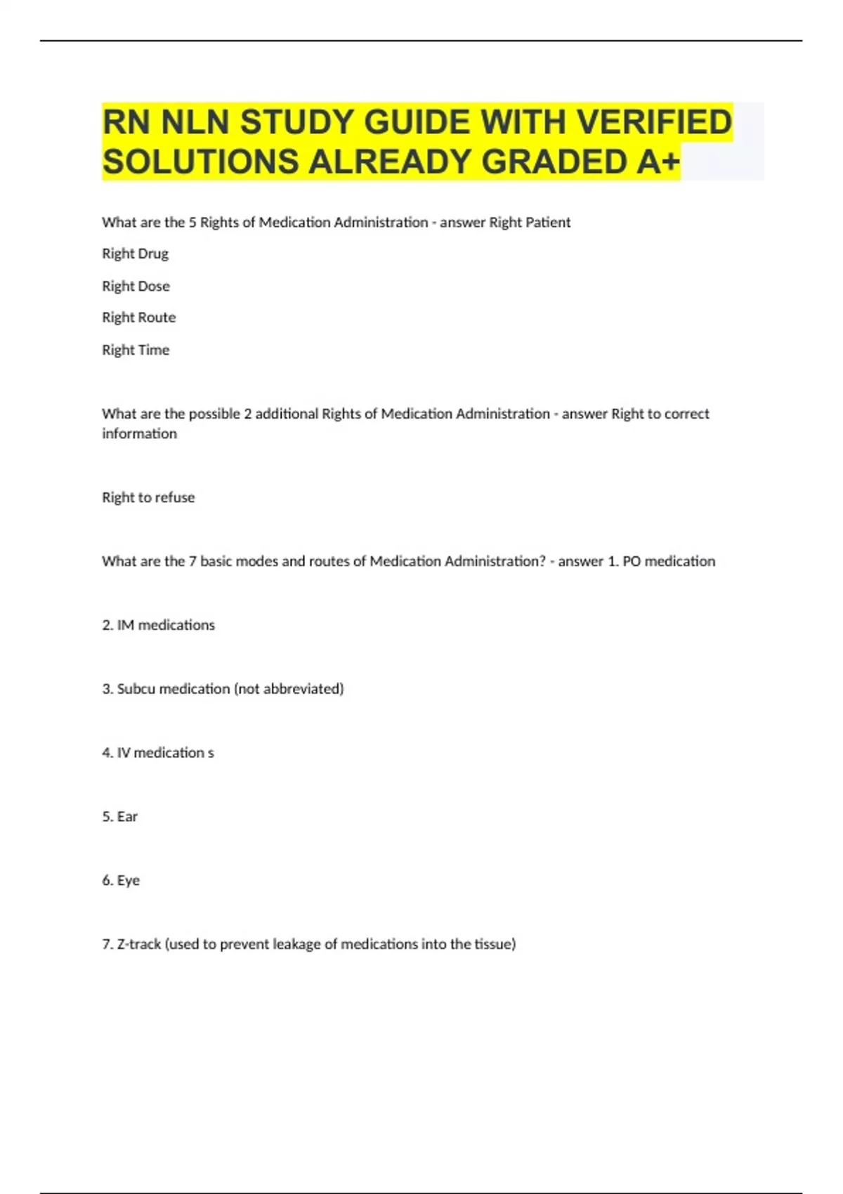 RN NLN STUDY GUIDE WITH VERIFIED SOLUTIONS ALREADY GRADED A+