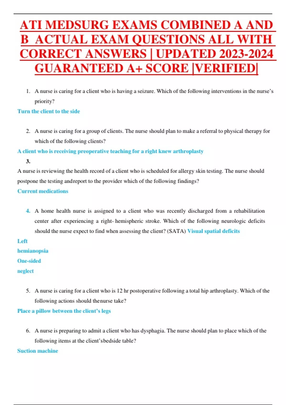 ATI MEDSURG EXAMS COMBINED A AND B ACTUAL EXAM QUESTIONS ALL WITH CORRECT ANSWERS | UPDATED GUARANTEED A+ SCORE |VERIFIEDATI MEDSURG EXAMS COMBINED A AND B ACTUAL EXAM QUESTIONS ALL WITH CORRECT ANSWERS | UPDATED GUARANTEED A+ SCORE |VERIFIEDATI MEDSURG EXAMS COMBINED A AND B ACTUAL EXAM QUESTIONS ALL WITH CORRECT ANSWERS | UPDATED GUARANTEED A+ SCORE |VERIFIEDATI MEDSURG EXAMS COMBINED A AND B ACTUAL EXAM QUESTIONS ALL WITH CORRECT ANSWERS | UPDATED GUARANTEED A+ SCORE |VERIFIED