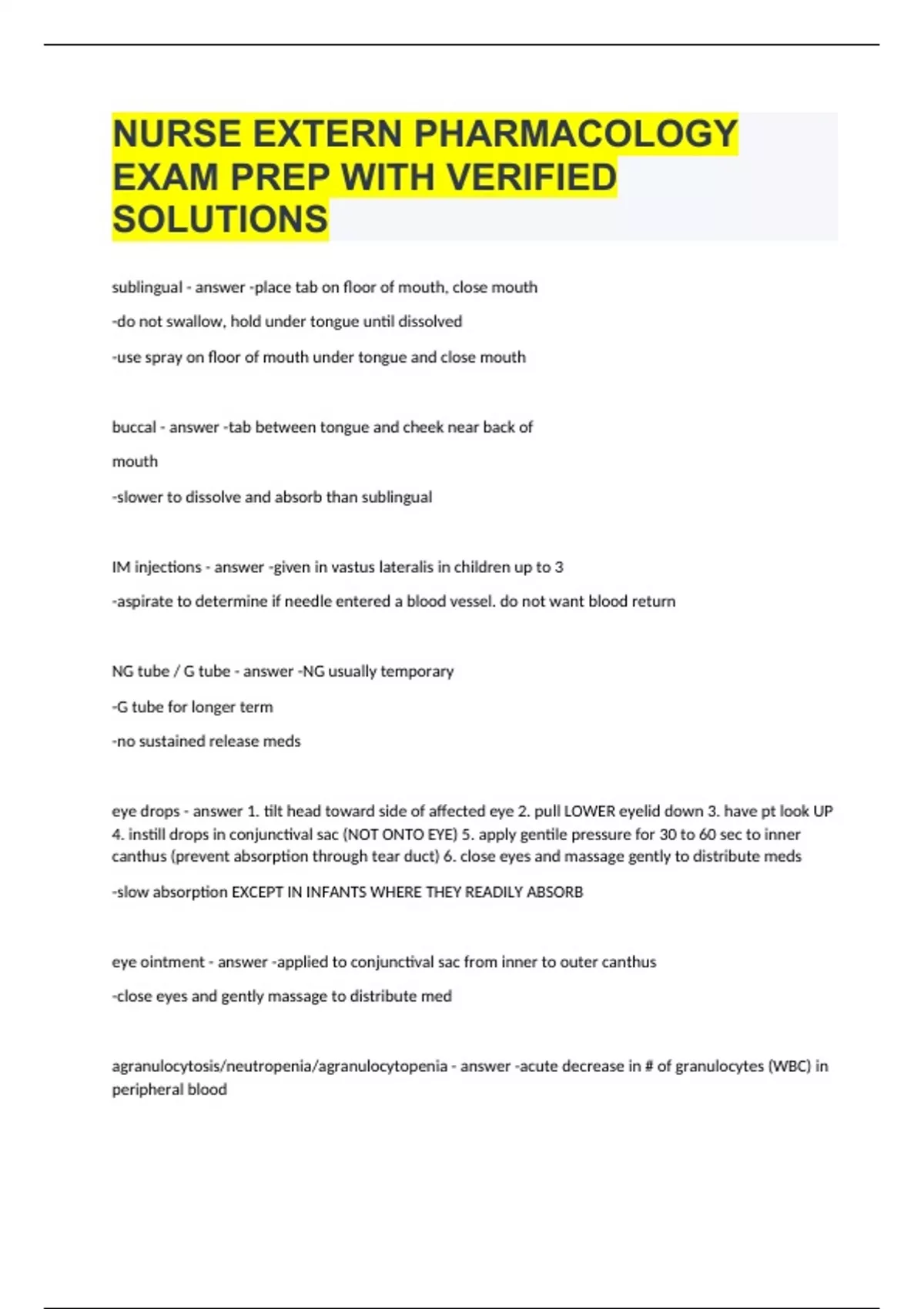 NURSE EXTERN PHARMACOLOGY EXAM PREP WITH VERIFIED SOLUTIONS