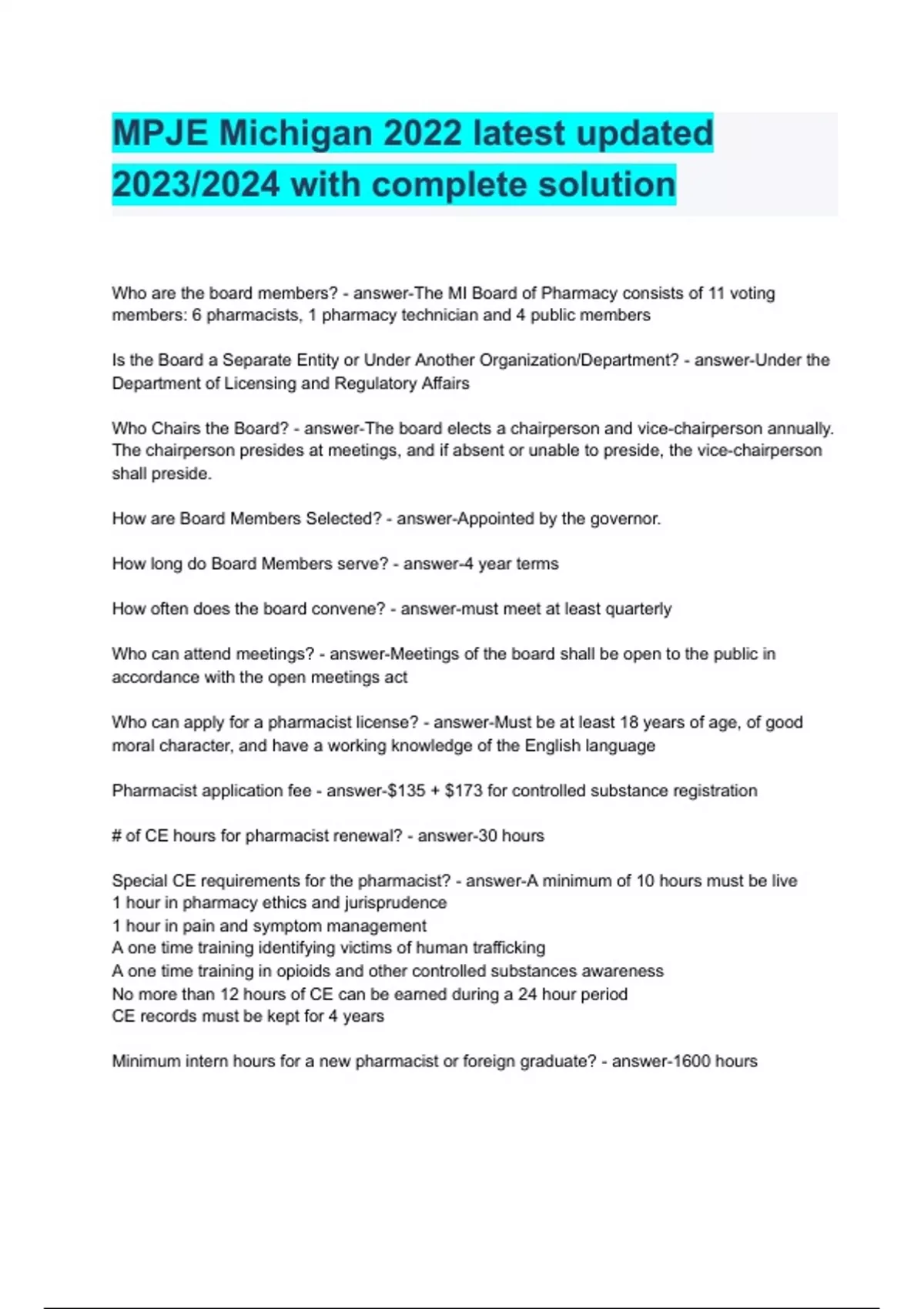 - MPJE Michigan 2022 latst updated 2023/2024 with c