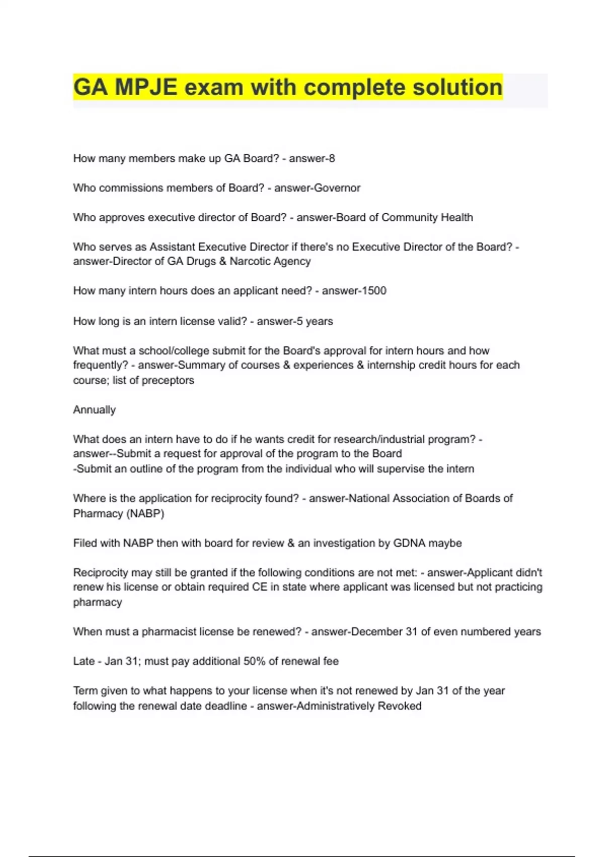GA MPJE exam with complete solution