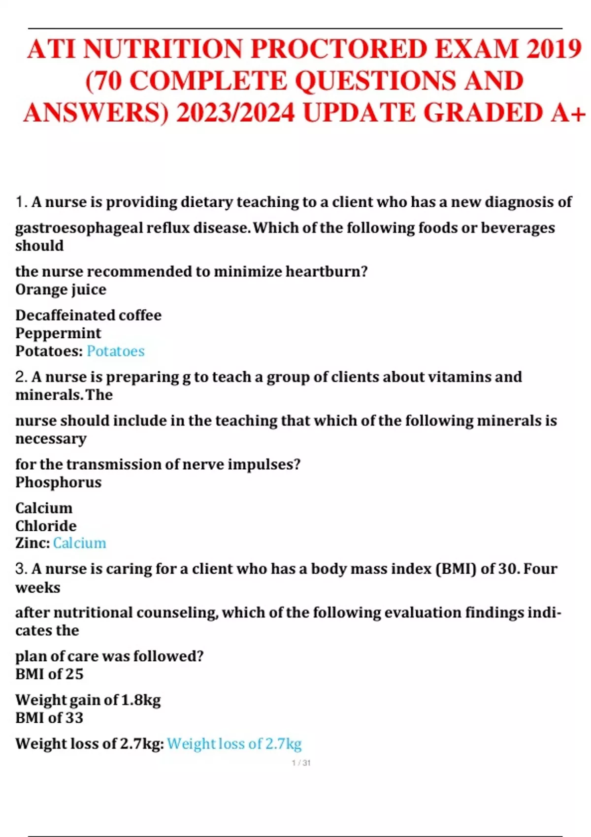 ATI NUTRITION PROCTORED EXAM 2019 (70 COMPLETE QUESTIONS AND ANSWERS) 2023/2024 UPDATE GRADED A+ ATI NUTRITION PROCTORED EXAM 2019 (70 COMPLETE QUESTIONS AND ANSWERS) 2023/2024 UPDATE GRADED A+ ATI NUTRITION PROCTORED EXAM 2019 (70 COMPLETE QUESTIONS AND ANSWERS) 2023/2024 UPDATE GRADED A+ ATI NUTRITION PROCTORED EXAM 2019 (70 COMPLETE QUESTIONS AND ANSWERS) 2023/2024 UPDATE GRADED A+