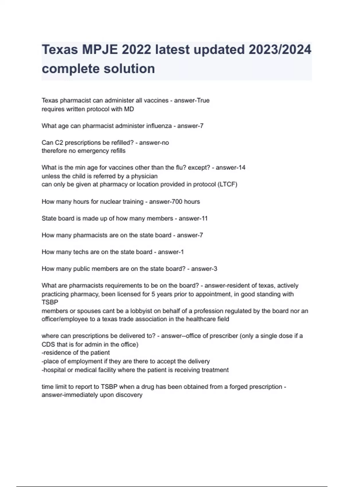 - Texas MPJE 2022 latst updated 2023/2024 complete