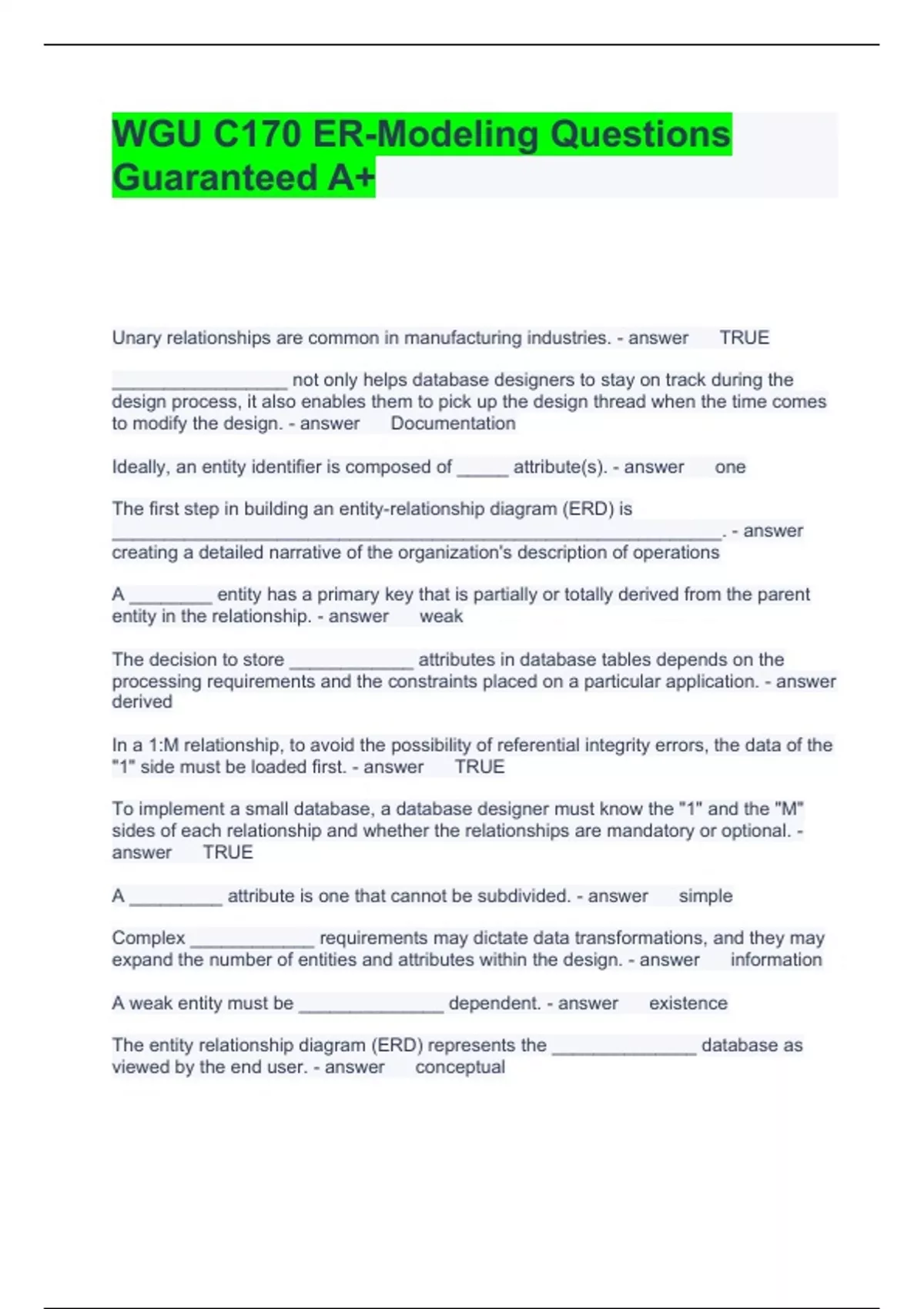 WGU C170 ER-Modeling Questions Guaranteed A+