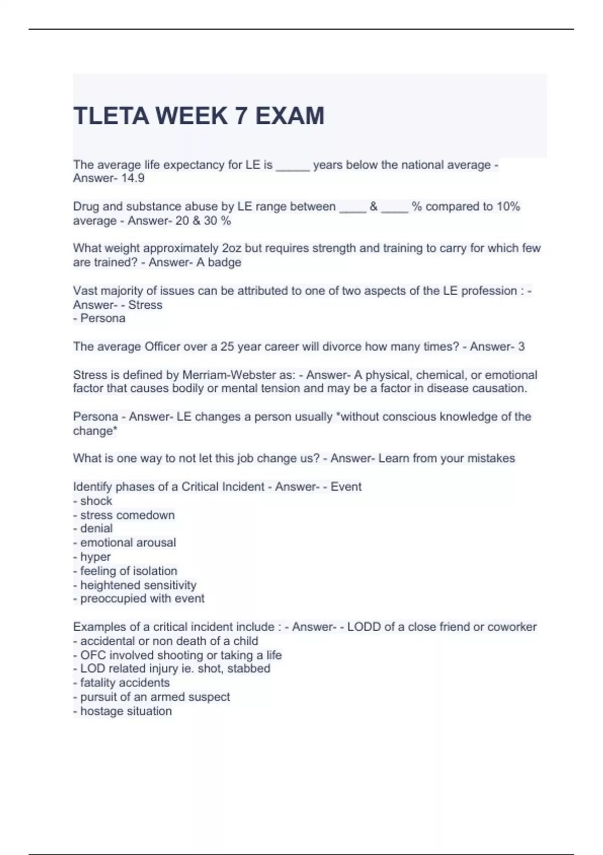 TLETA WEEK 7 EXAM QUESTIONS WITH CORRECT ANSWERS