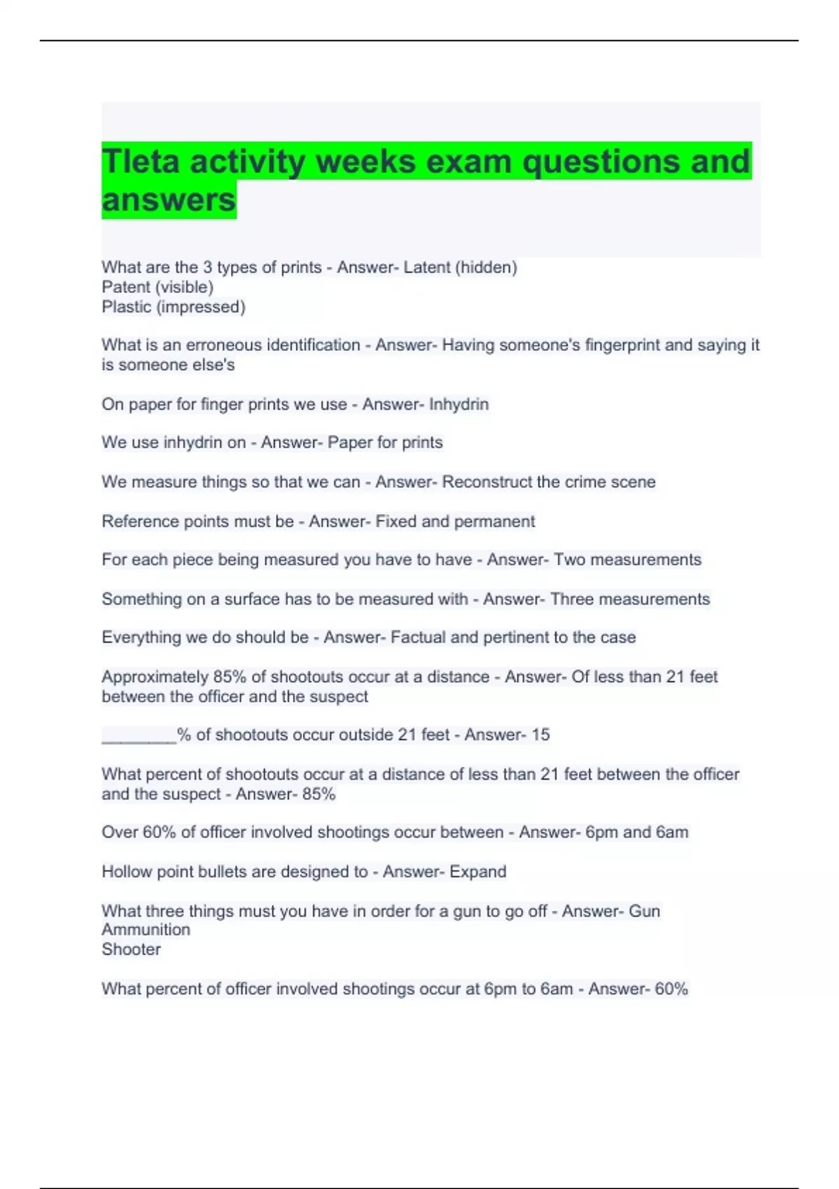 tleta activity weeks exam questions and answers